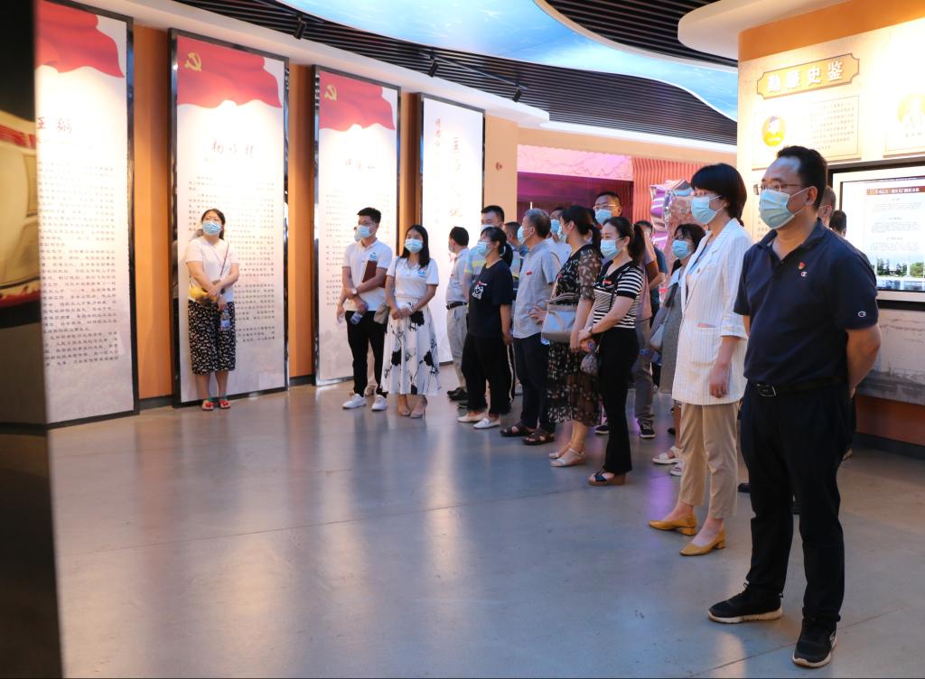最后,全体党员在党旗下庄严宣誓,重温入党誓词。
