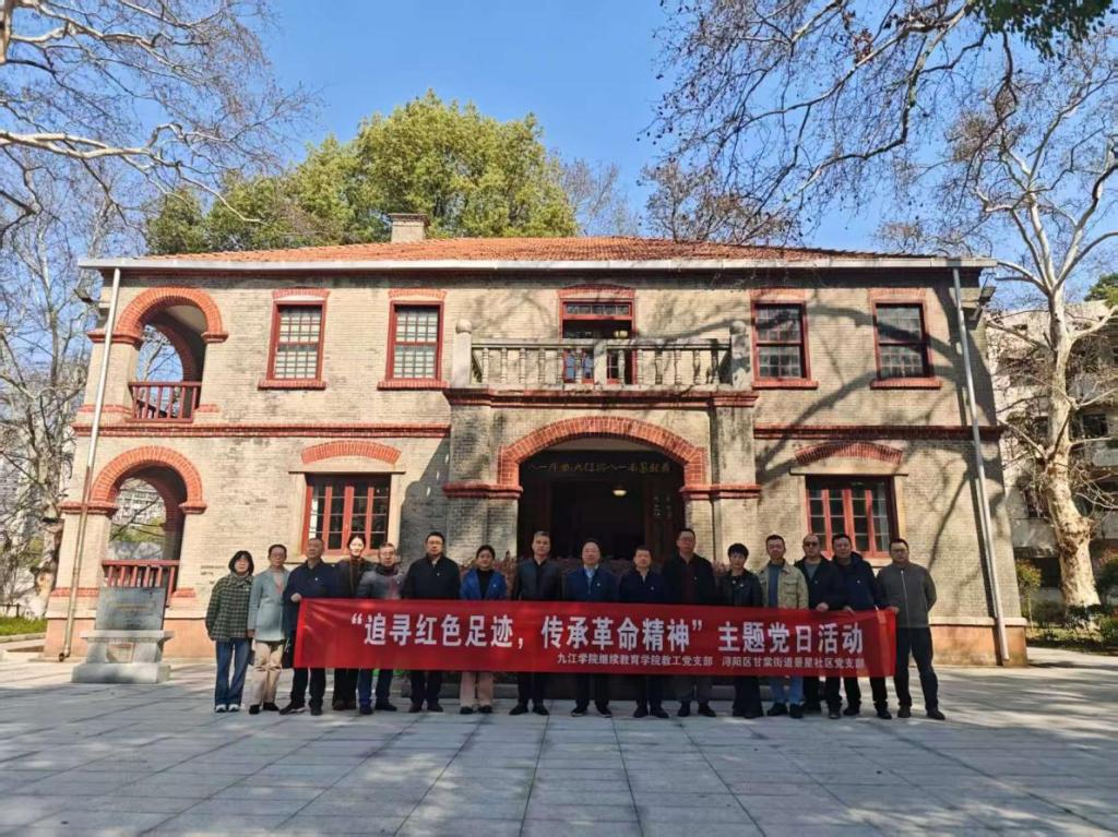 2025年3月19日,米兰milan官方网站教工党支部与九江市浔阳区甘棠街道景星社区党支部联合开展了一场别开生面的主题党日活动。此次活动以“追寻红色足迹,传承革命精神”为主题,组织党员前往国民革命军第二十四师叶挺指挥部旧址参观学习,重温入党誓词,并探讨校地合作与党建共建等事宜。