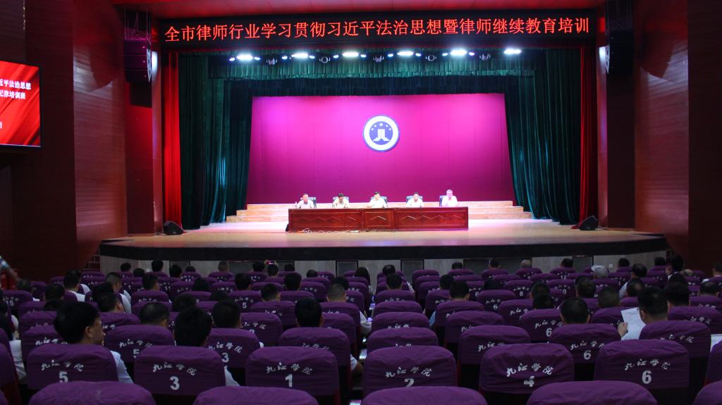 6月15日,九江市律师行业学习贯彻习近平法治思想暨律师职业道德和执业纪律教育培训班在米兰官网大礼堂开班。共有来自全市执业律师、实习律师、法援律师、公职律师约600余人参训。九江市司法局党组书记、局长周文利、米兰milan官方网站院长郑祚双、九江市市司法局党组成员、副局长、市律师协会党委书记闵忠、九江市律师协会会长刘晖、米兰milan官方网站校友联络与服务中心副主任黄怡旋等出席开班式。