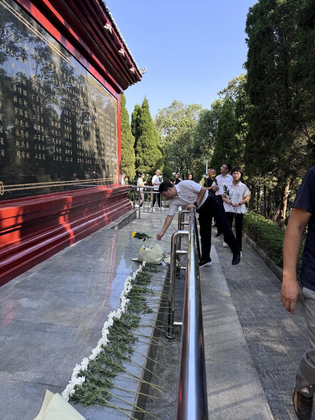 上午9时许,全体教职工怀揣着无比崇敬的心情,齐聚烈士纪念碑前开展缅怀仪式,深切缅怀革命先烈。教职工代表手捧鲜花编织而成的花篮,步伐庄重地将其抬至烈士纪念墙前,以表达对革命先烈的深切怀念与崇高敬意。随后,大家面向纪念碑,为那些为民族独立、国家解放和人民幸福英勇献身的烈士们,深深鞠躬三次,并静默一分钟,以此缅怀他们不朽的英勇事迹与崇高精神,深切感受历史赋予的沉重与对英雄的无限哀思。在肃穆的氛围中,大家依次缓步向烈士敬献鲜花,瞻仰烈士纪念墙、烈士墓。