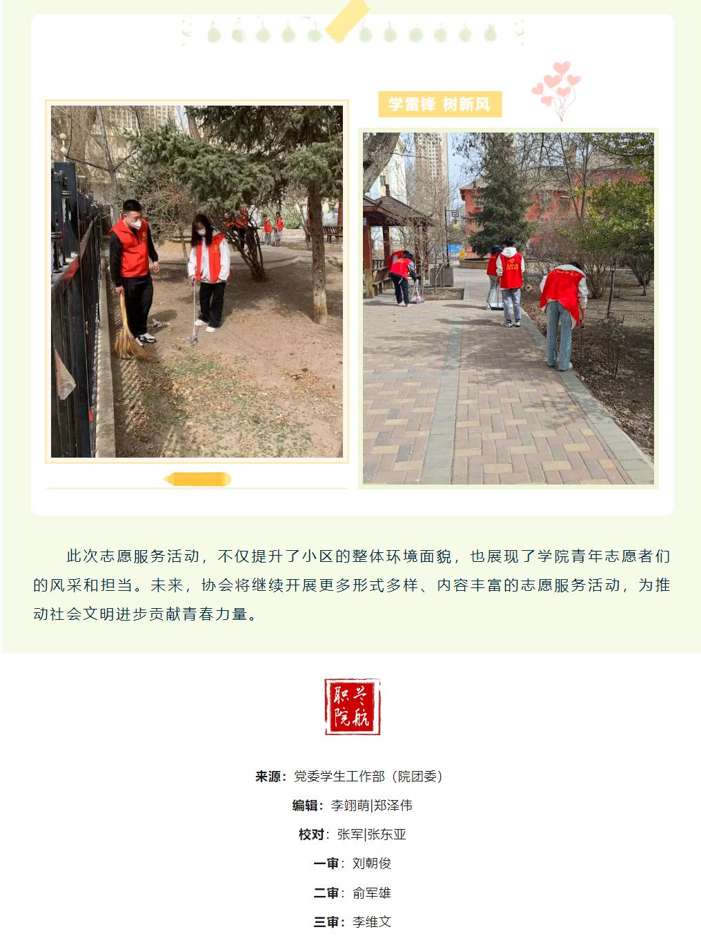 学院青年志愿者走进万里小区开展环境卫生整治志愿服务活动