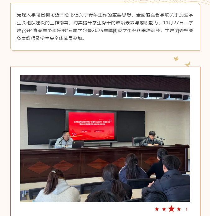 学院召开“青春年少读好书”专题学习暨2025年院团委学生会秋季培训会