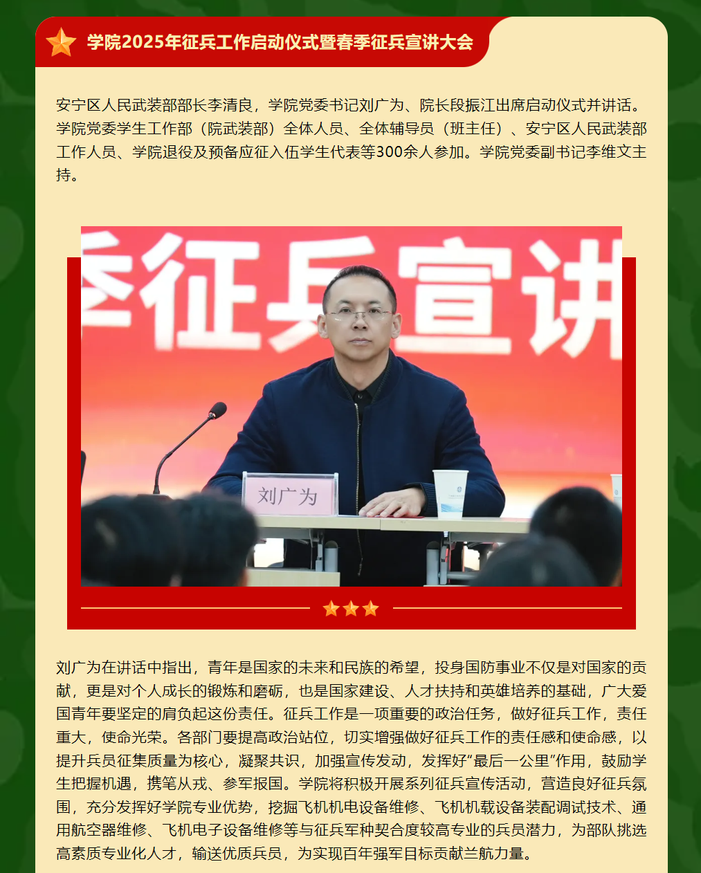 青春有梦 强军有我| 学院召开2025年征兵工作启动仪式暨春季征兵宣讲大会