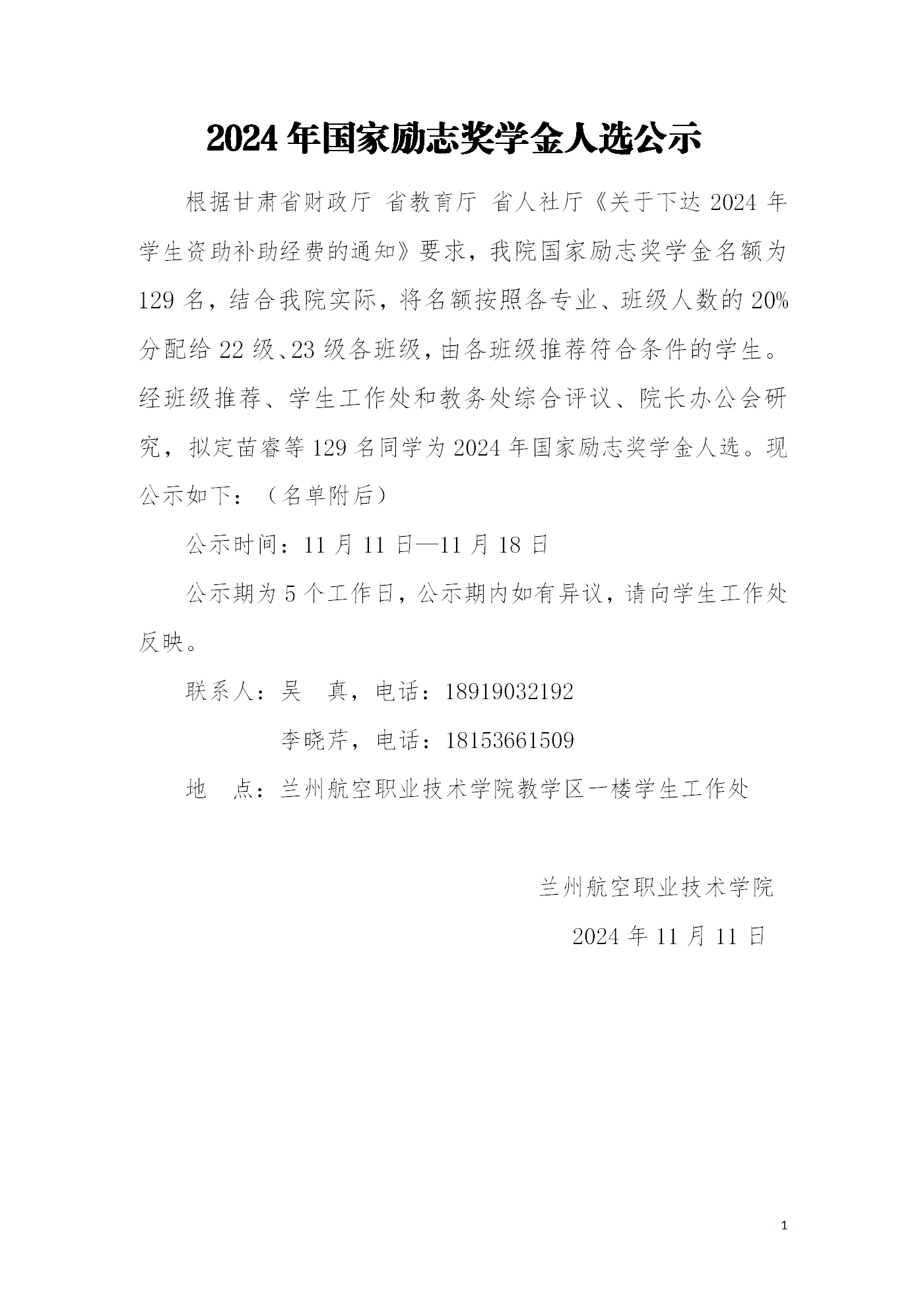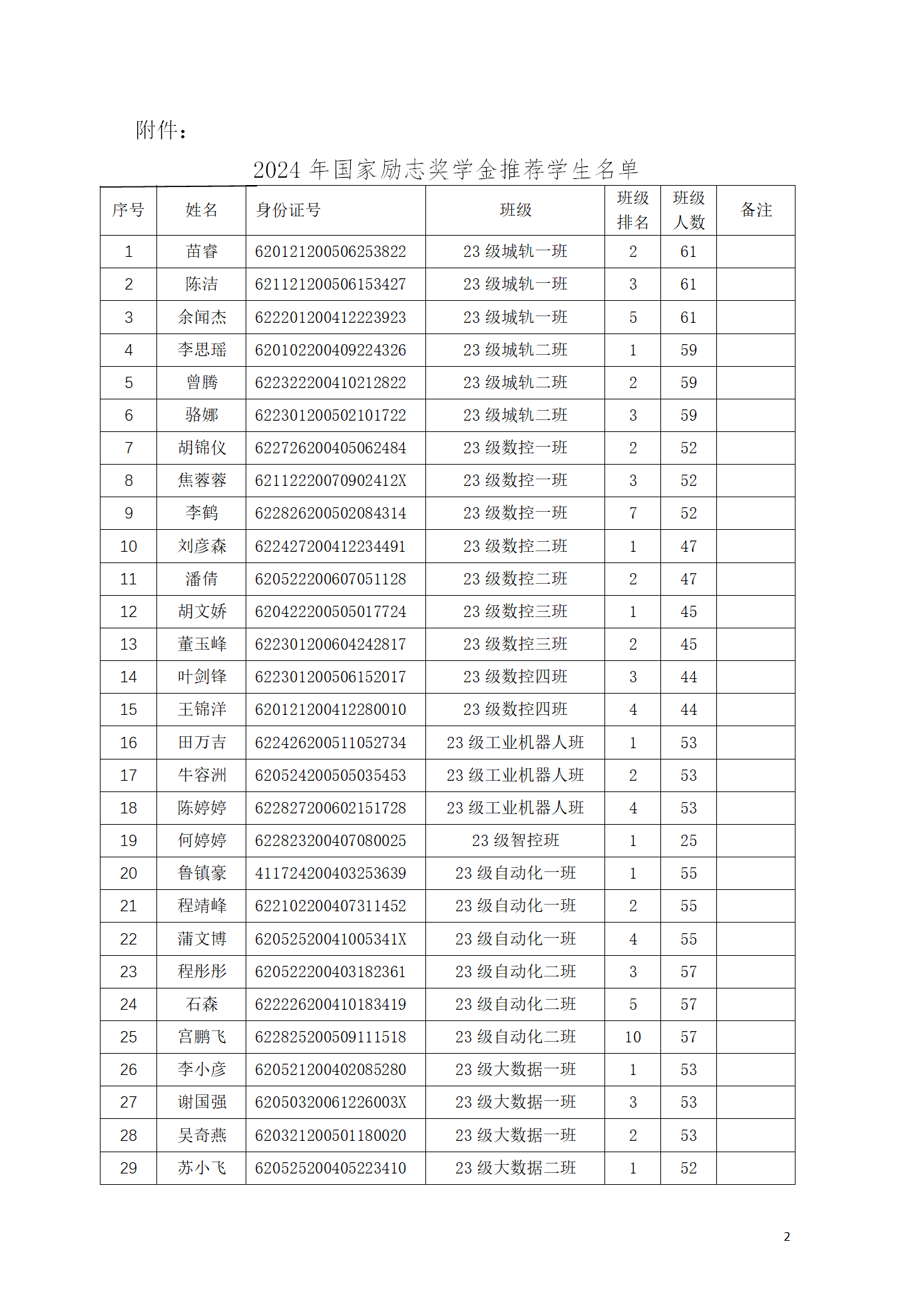 2024年国家励志奖学金人选公示