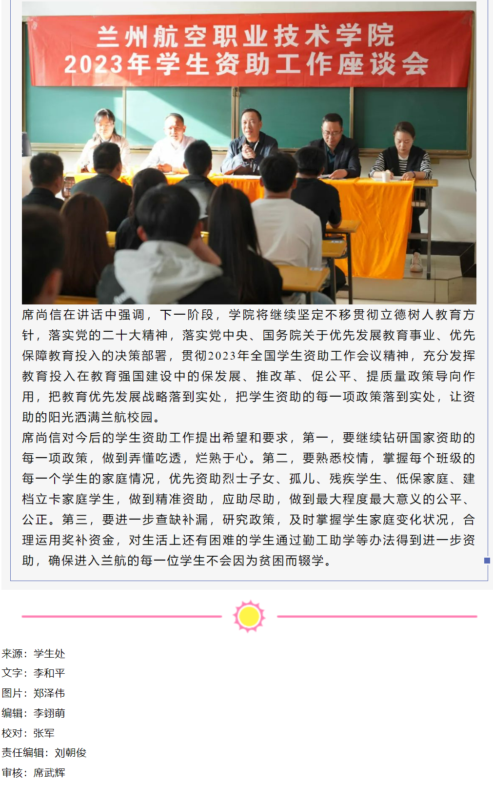 学院召开2023年学生资助工作座谈会