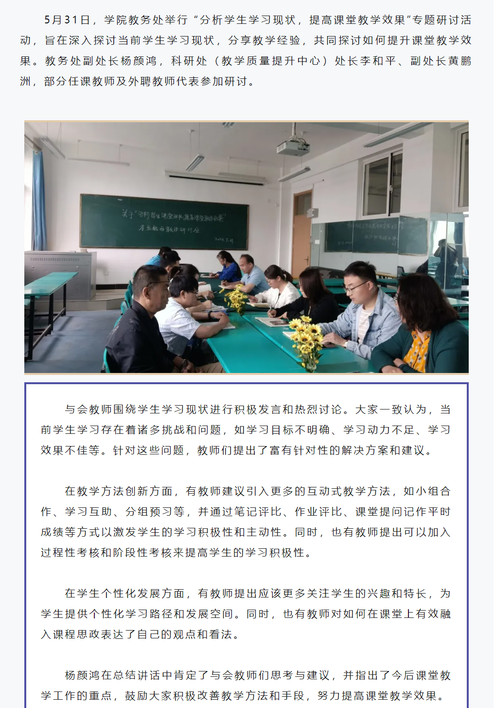 学院教务处举行“分析学生学习现状,提高课堂教学效果”专题研讨活动