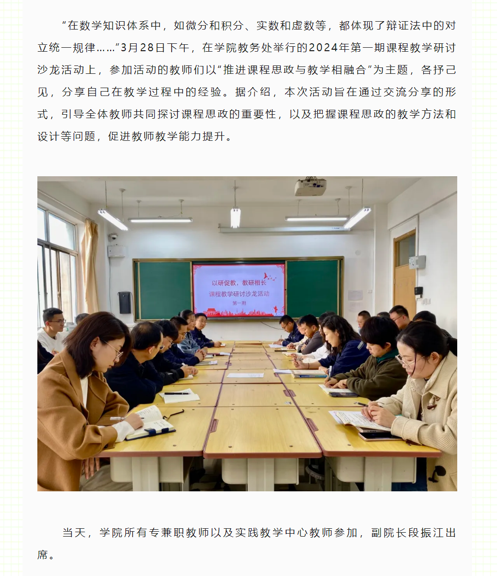 聚焦课程思政 促进能力提升 | 学院2024年第一期课程教学研讨沙龙活动举行
