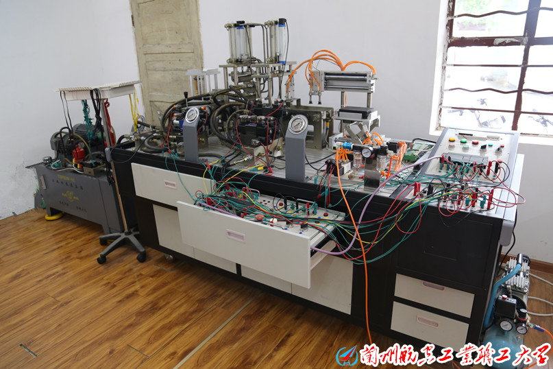 液压实训室综合实训室主要进行液压与气压传动方面的实验实训,能进行气、液动元件功能演示实验;气、液动基本逻辑回路实训;气、液动典型基本回路设计实训;可编程序控制器(PLC)电气控制实验;机-电-气一体控制实验;学生自行设计、组装的扩展性回路实验;气、液压控制系统设计实验。