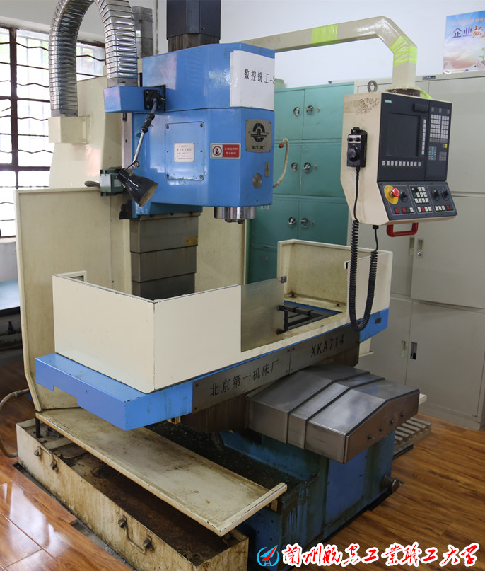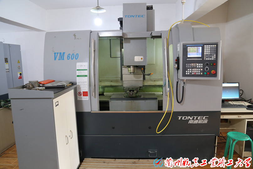数控铣削实训室拥有北京机床厂XKA714型数控铣床,配置SIEMENS802D系统;南通机床厂VM600型数控铣床,配置FANUC 0i MD系统;南通机床厂VM600型数控铣床,配置华中数控系统;南通机床厂VMCL850型加工中心,配置FANUC 0i MD系统;方正数控机床厂DK7740型电火花数控线切割机床,价值180余万元。实训室主要承担数控编程及加工、数控加工工艺、数控原理控制、数控机床数据传输、数控故障诊断与维修等的实习实训工作。