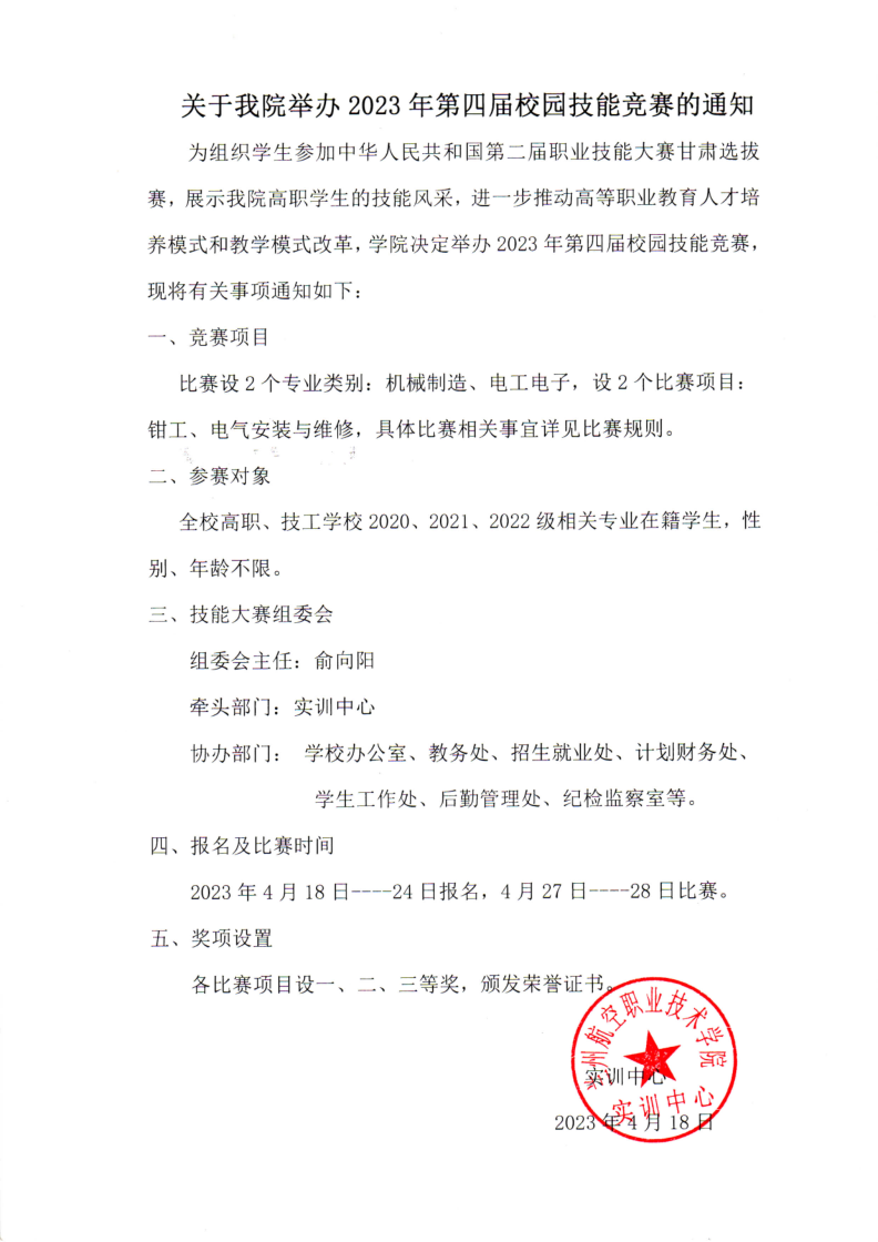 关于我院举办 2023 年第四届校园技能竞赛的通知