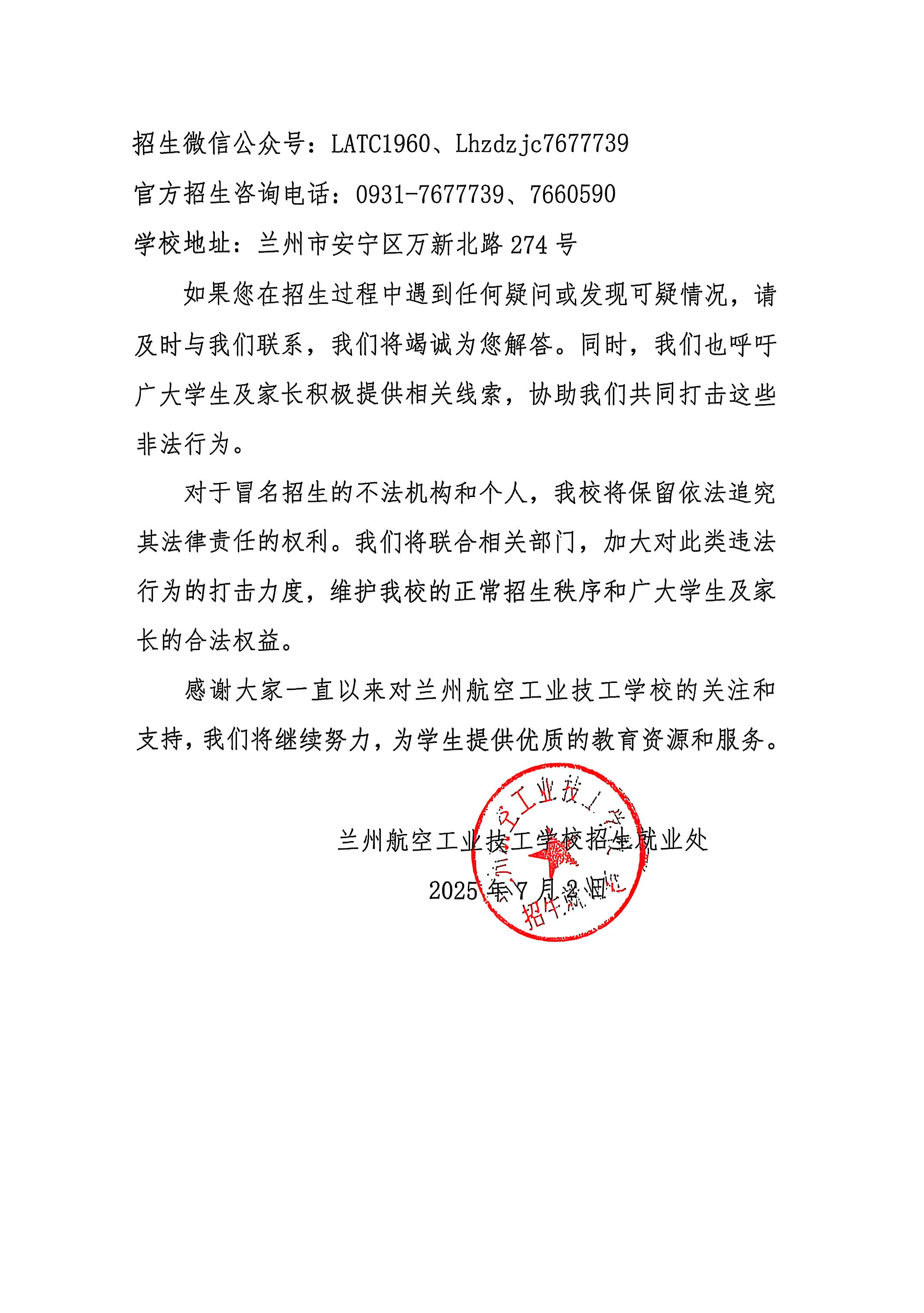 关于冒名招生的严正声明