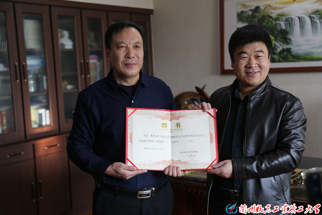 康廷虎还代表西北师范大学心理学院向席尚信颁发了西北师范大学心理学院专业实习、实践指导教师的聘书。