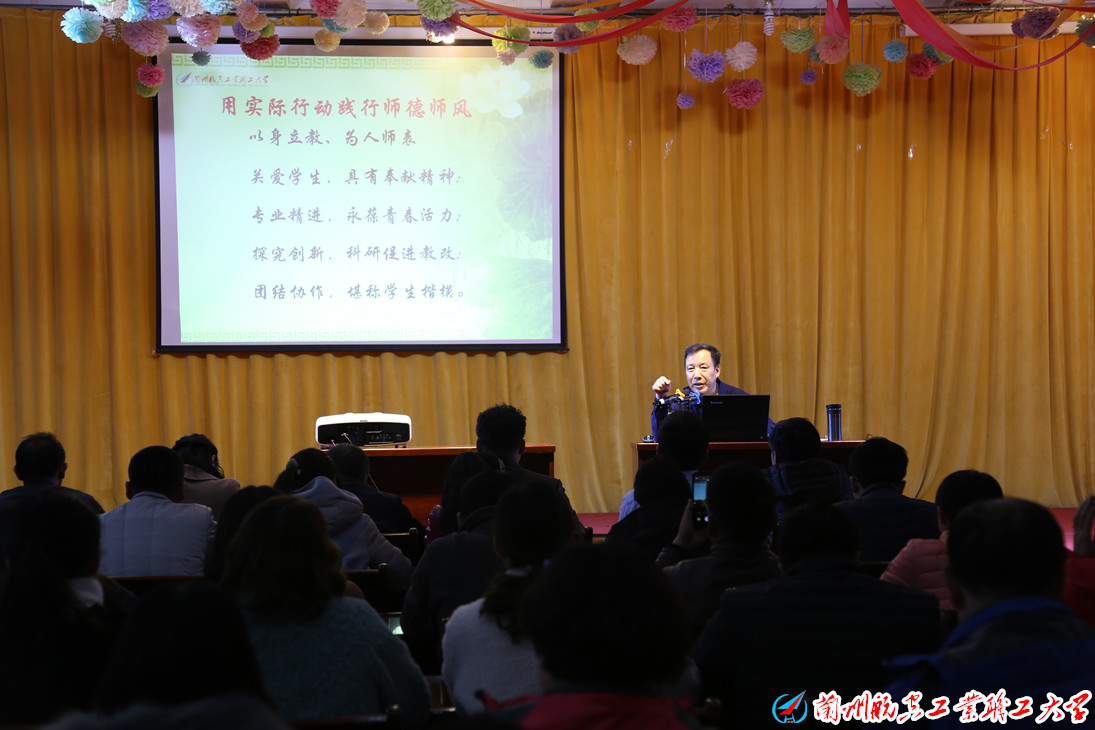 | 11月29日下午,在“深化师德师风建设 培养造就新时代高素质教师队伍”专题网络培训结课总结大会上,兰州航空工业职工大学校长席尚信教授为全校教职工做了关于师德的专题讲座。