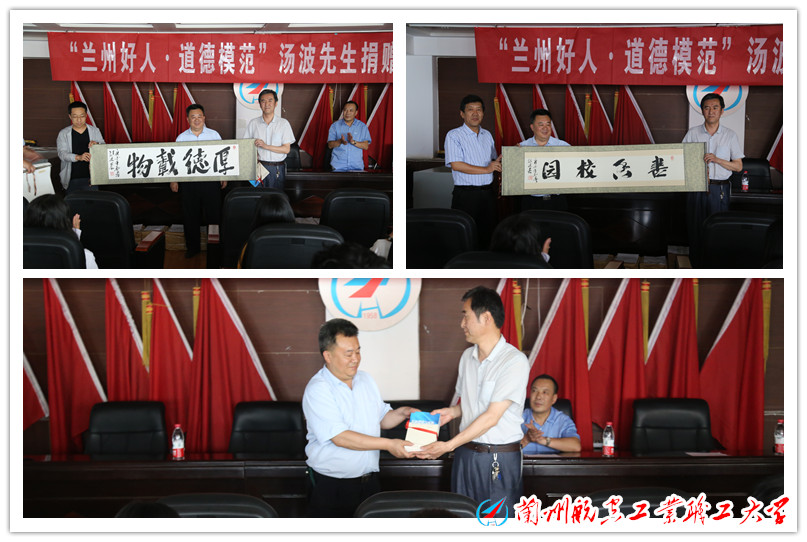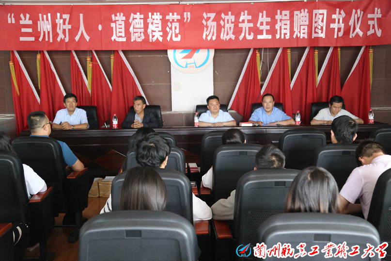 7月18日下午,“兰州好人”汤波先生捐赠图书仪式在学校多功能厅举行。学校校长席尚信、副校长俞向阳出席仪式,校办公室、教务处和校团委负责人参加了仪式。仪式由俞向阳主持。