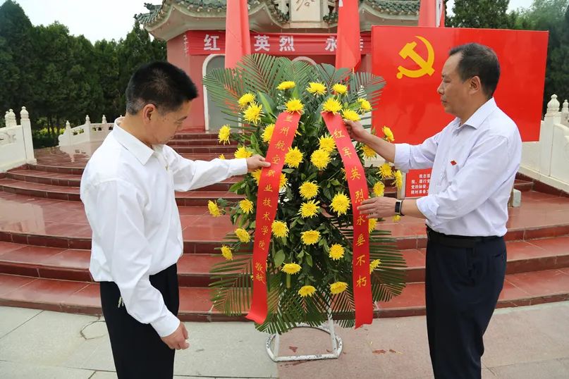 在庄严的会师塔前,校长席尚信和书记李维文带领党员同志向会师纪念塔敬献花篮,向红军先烈鞠躬默哀,表示崇高的敬意。党员同志们重温入党誓词,整齐的宣誓声传递出那份庄重的承诺、展示出那份厚重的责任。