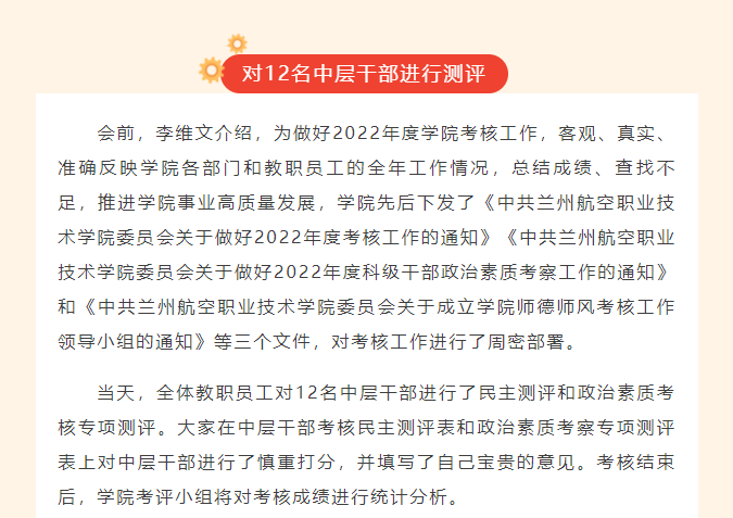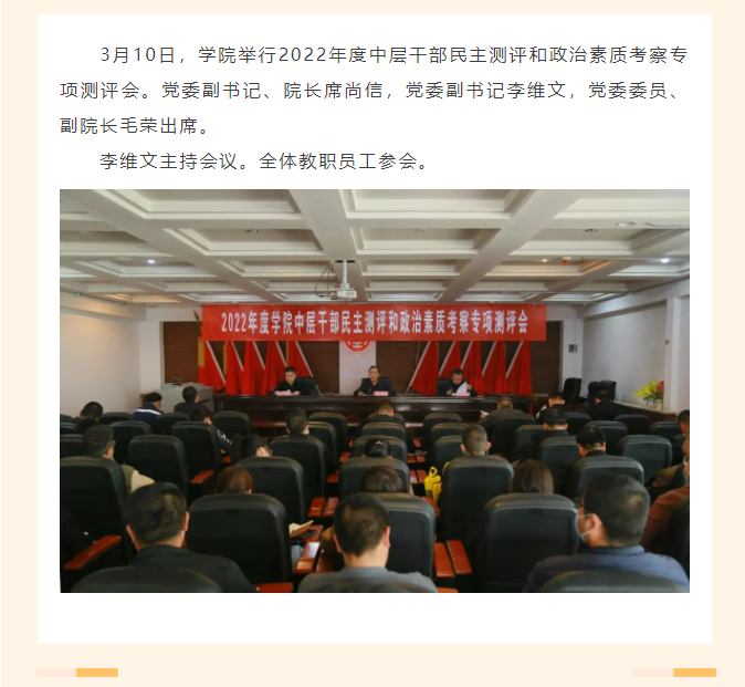 【“三抓三促”行动进行时 】学院举行2022年度中层干部民主测评和政治素质考察专项测评会