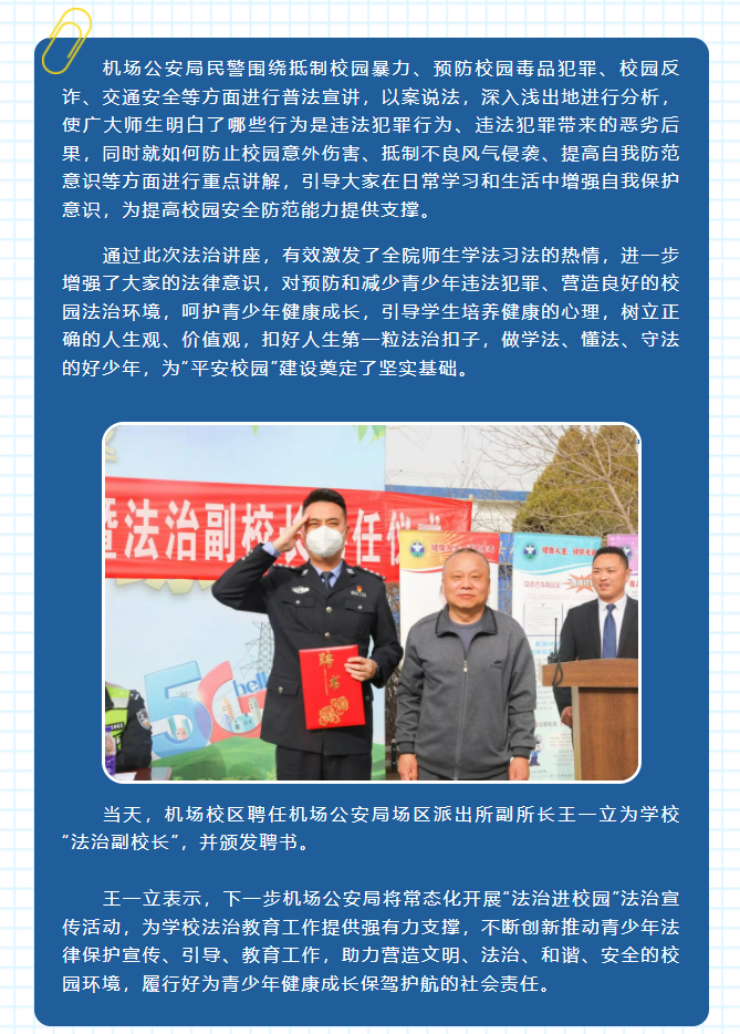 机场校区有了“法治副校长”