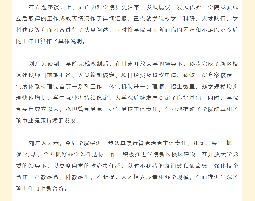 甘肃开放大学校长邓小娟一行来学院调研指导工作