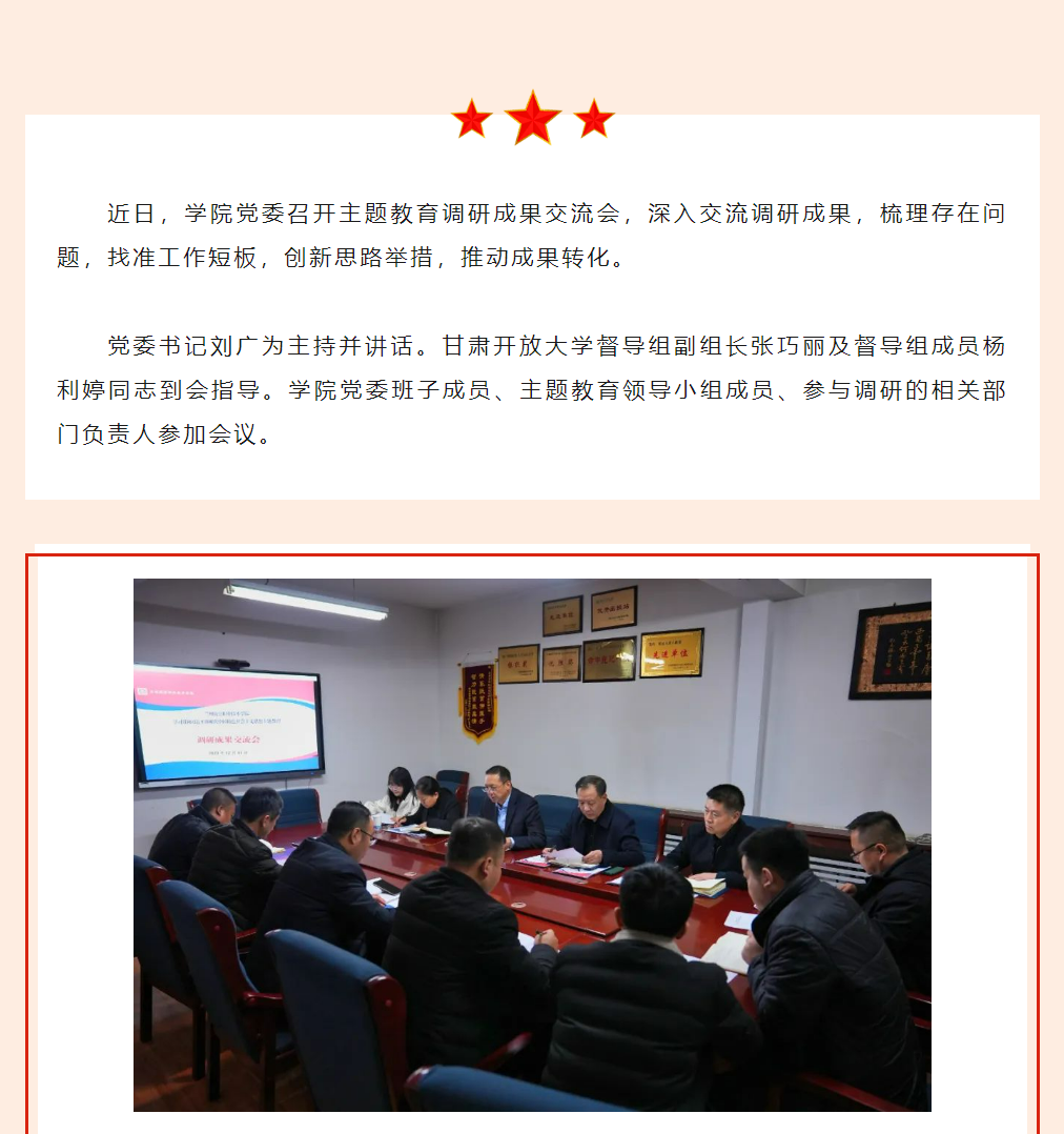 学院党委主题教育调研成果交流会召开