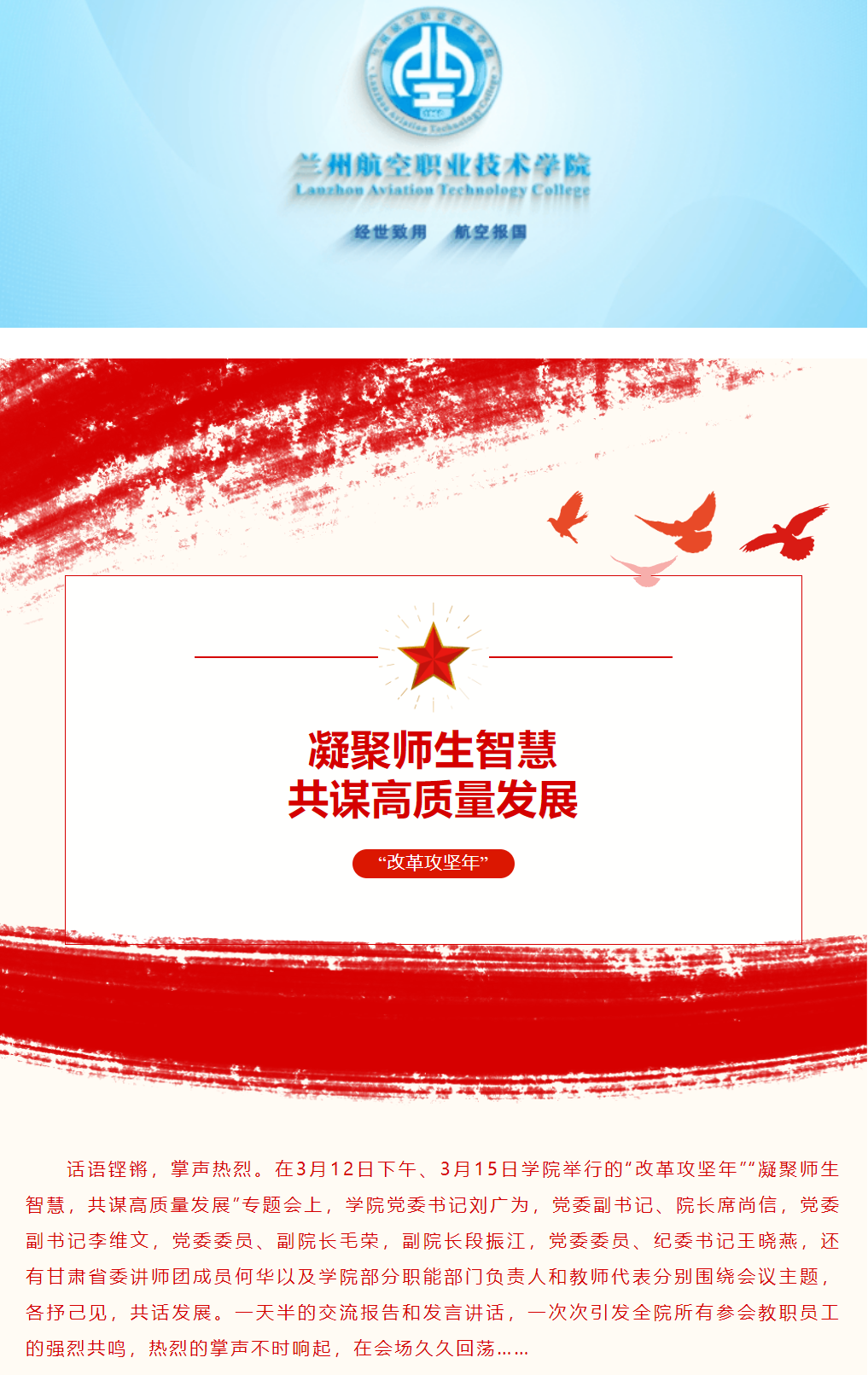 牢记使命谋良策——记学院召开“改革攻坚年”“凝聚师生智慧共谋高质量发展”专题会之一
