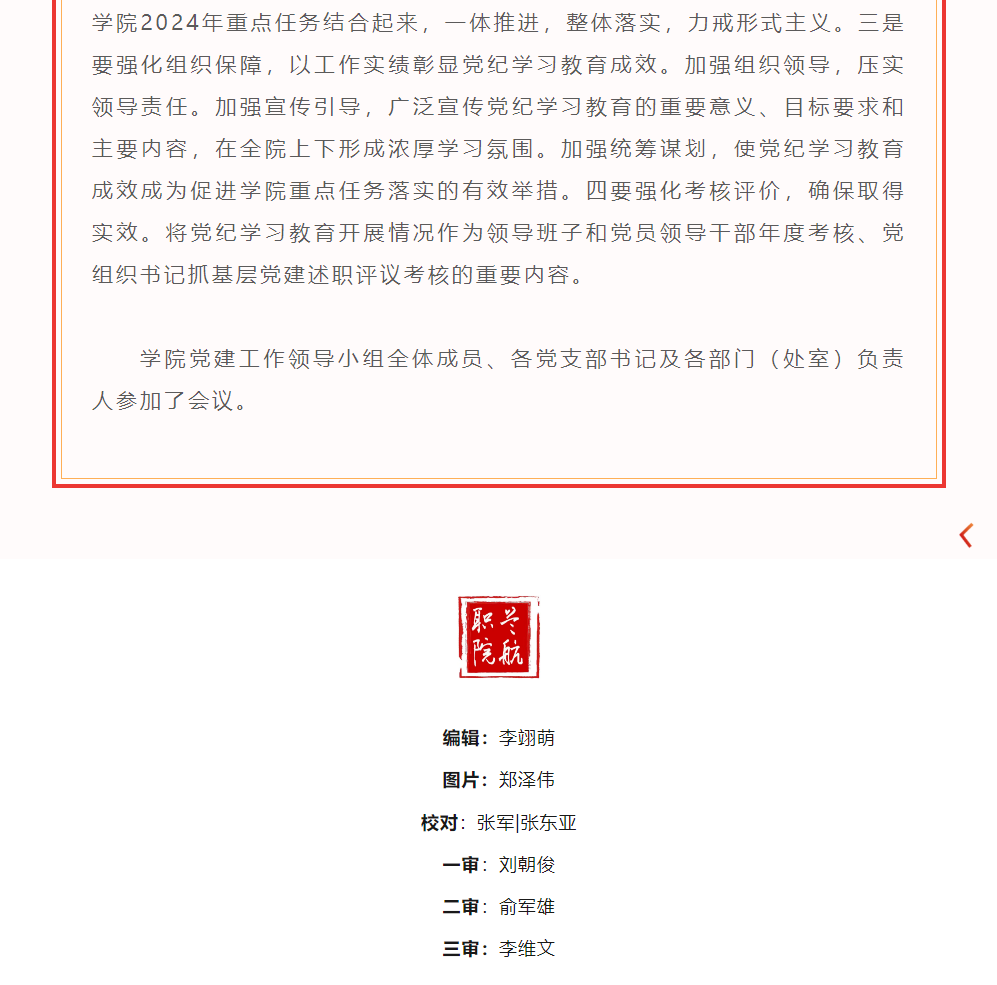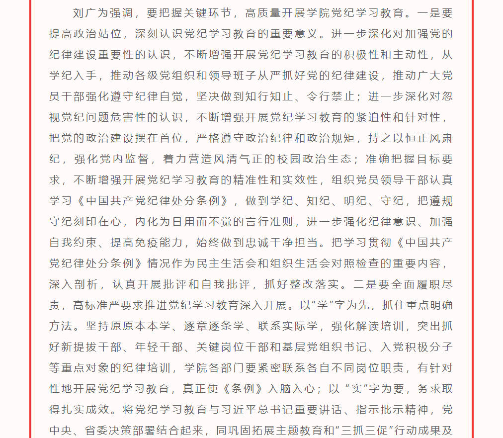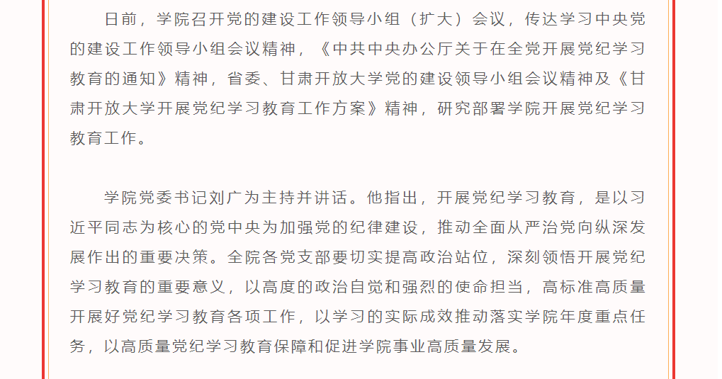 学院召开党的建设工作领导小组(扩大)会议研究部署党纪学习教育工作