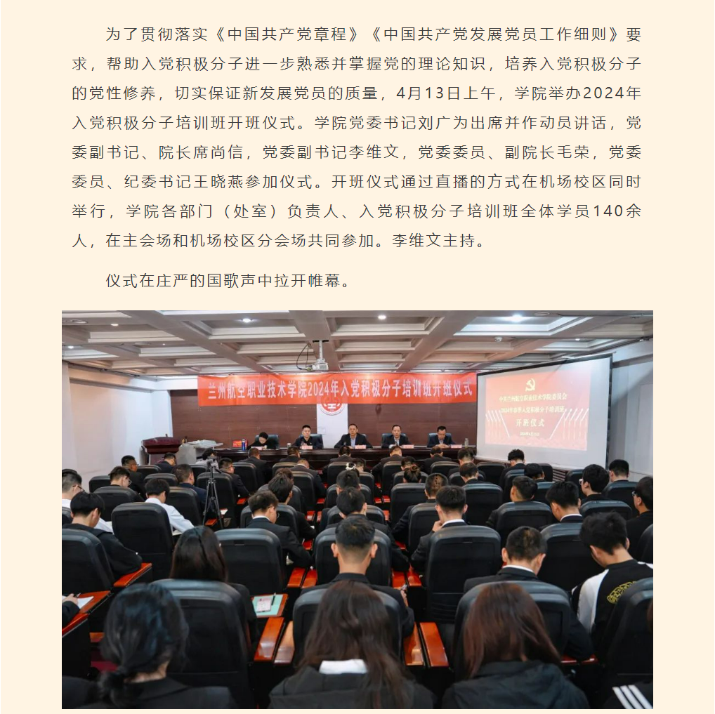 学院举办2024年入党积极分子培训班开班仪式