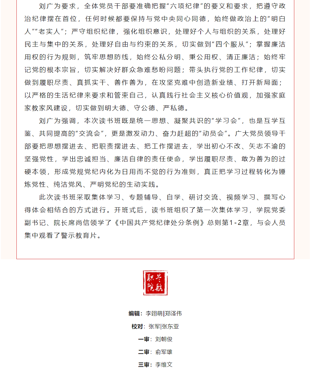 学纪 知纪 明纪 守纪 | 学院举行党纪学习教育读书班开班式暨第一次集体学习