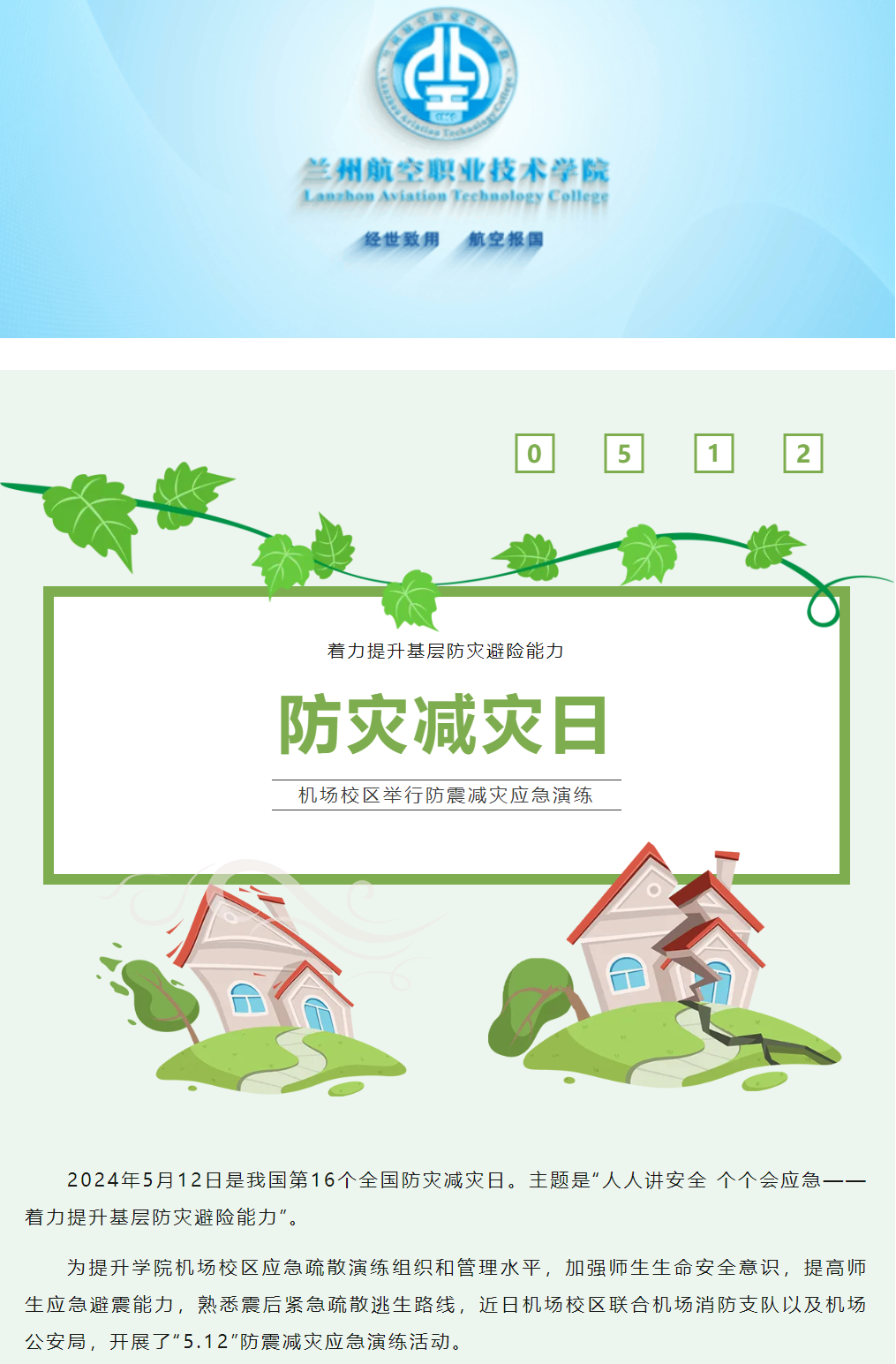 学院机场校区举行防震减灾应急演练活动