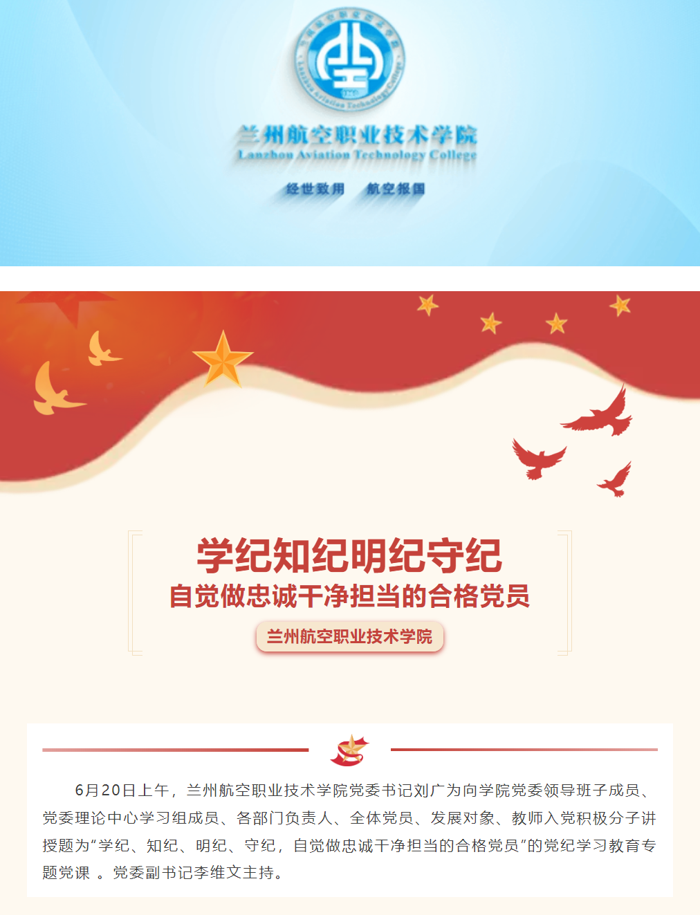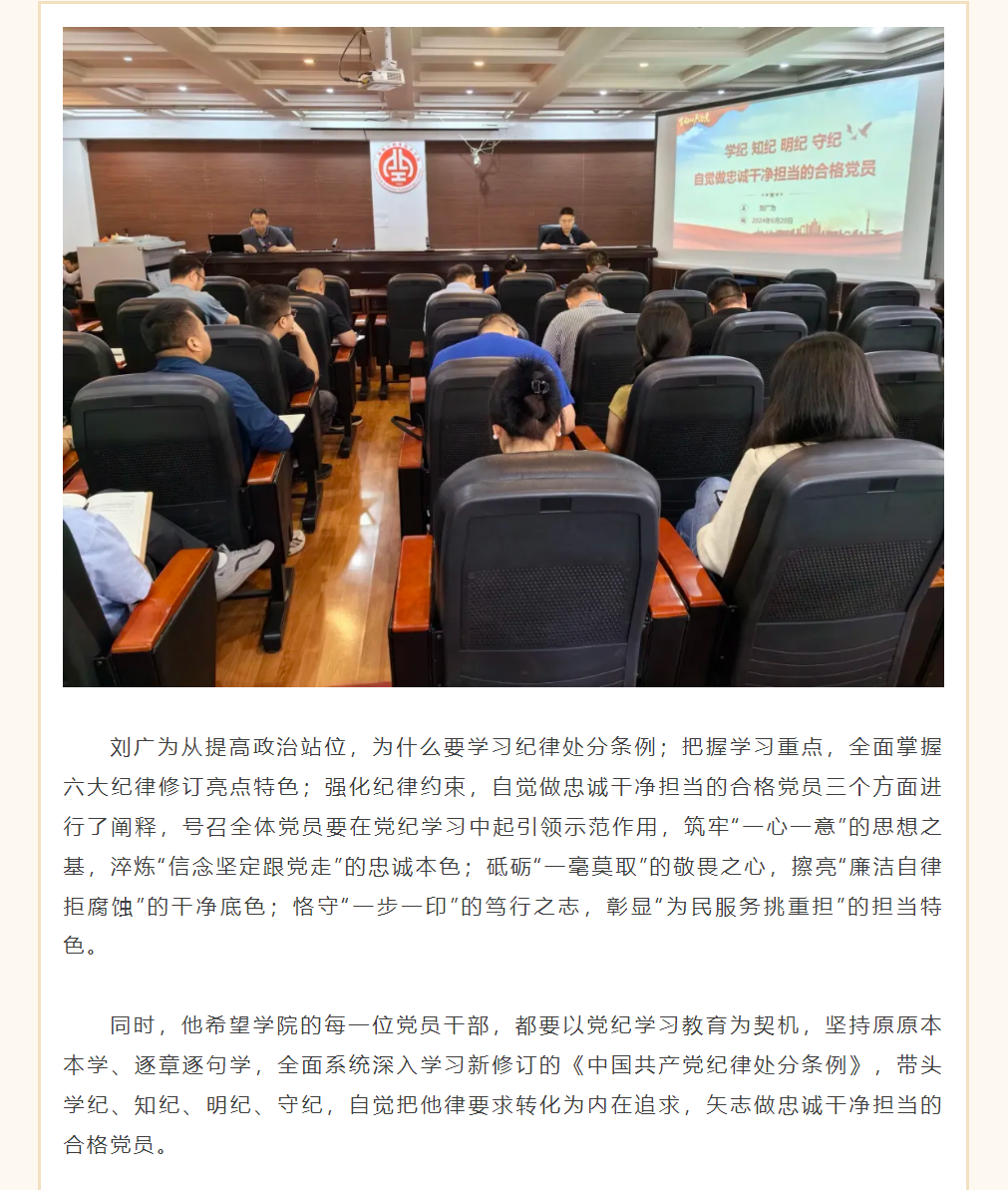 党委书记刘广为讲授党纪学习教育专题党课