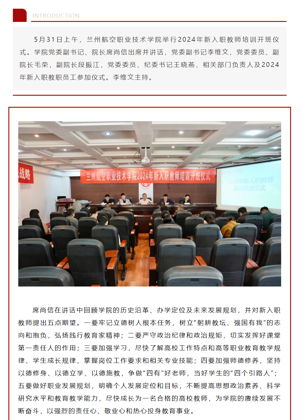 学院举行2024年新入职教师培训开班仪式