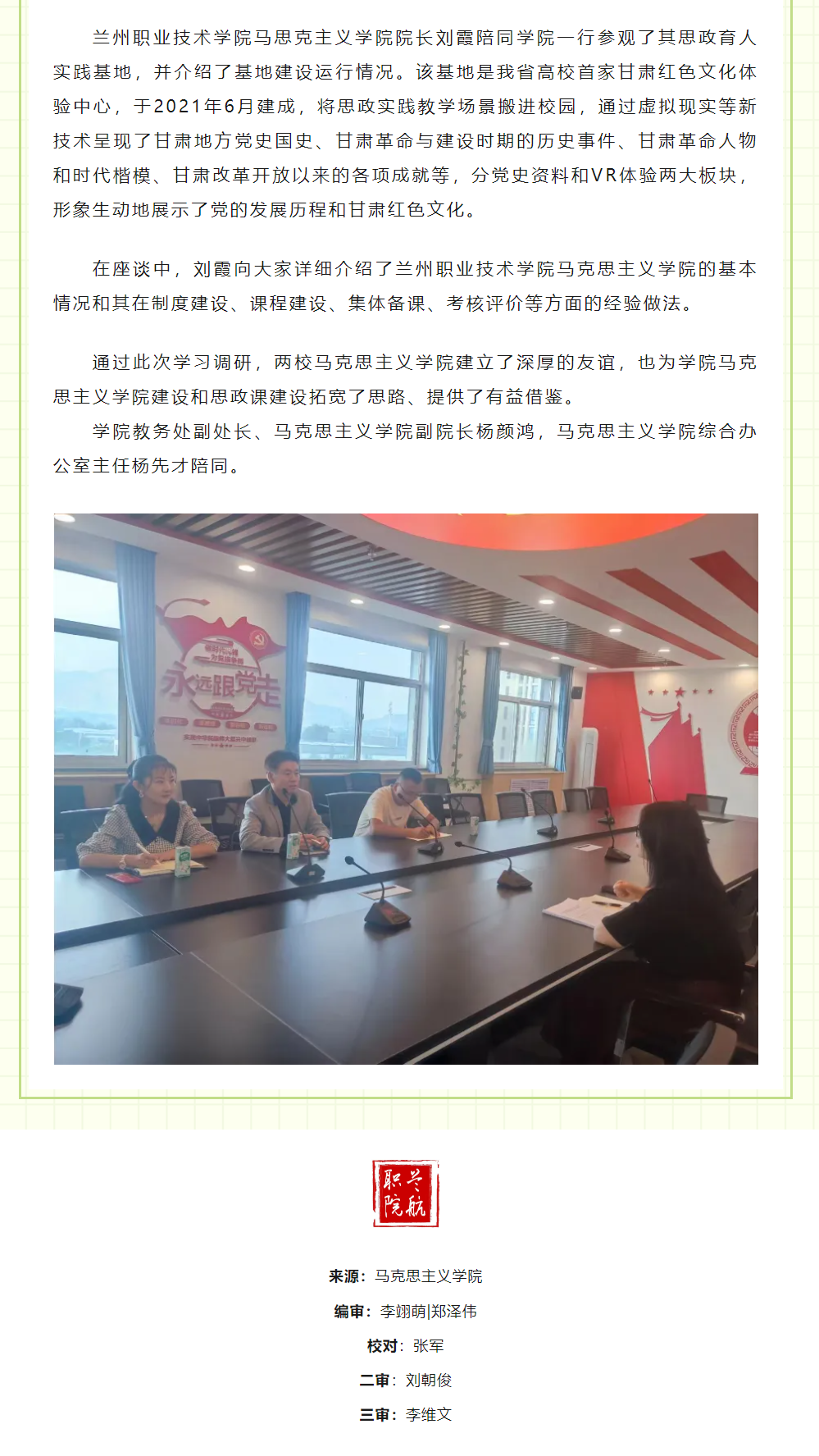 学院马克思主义学院组织教师赴兰州职业技术学院学习调研