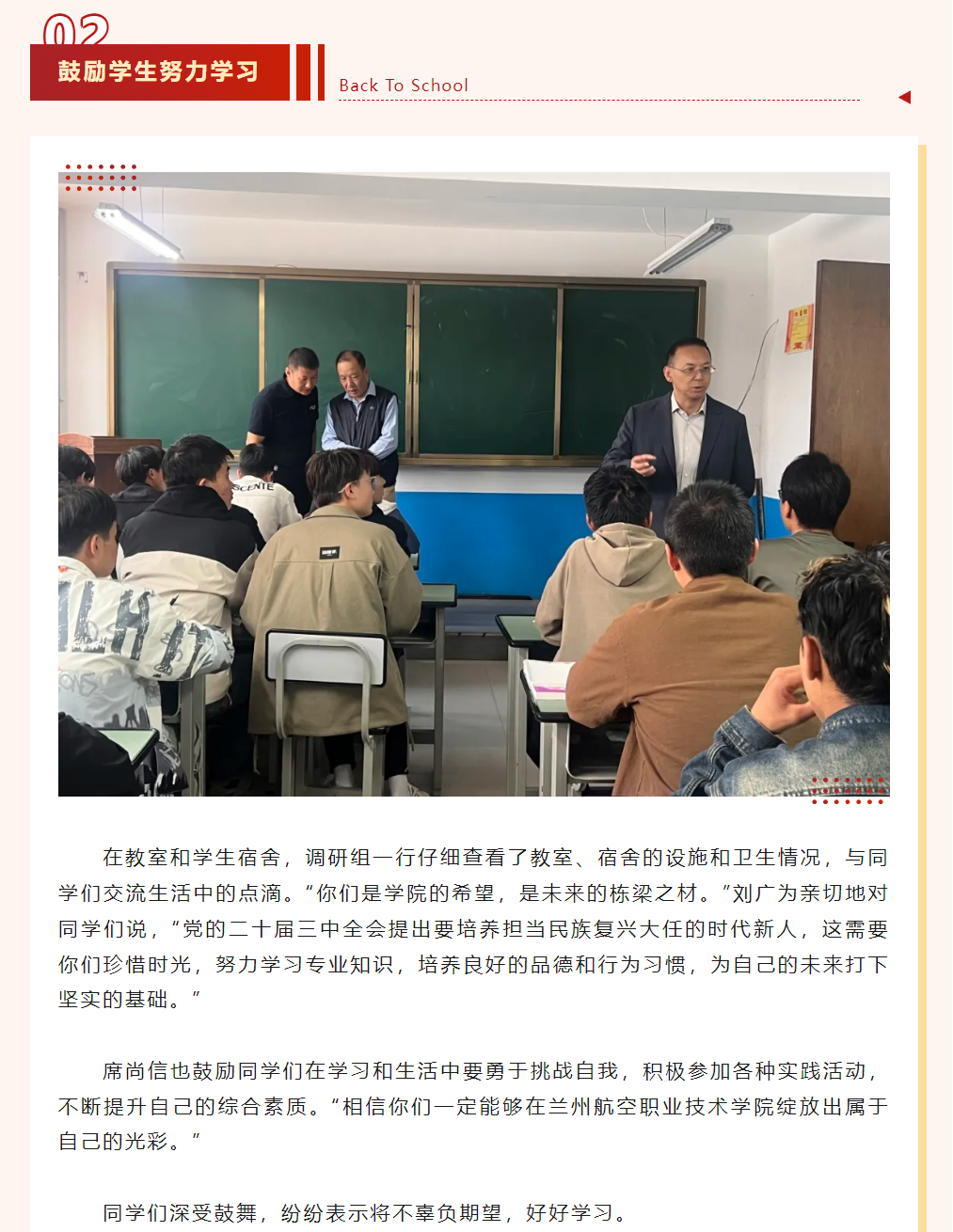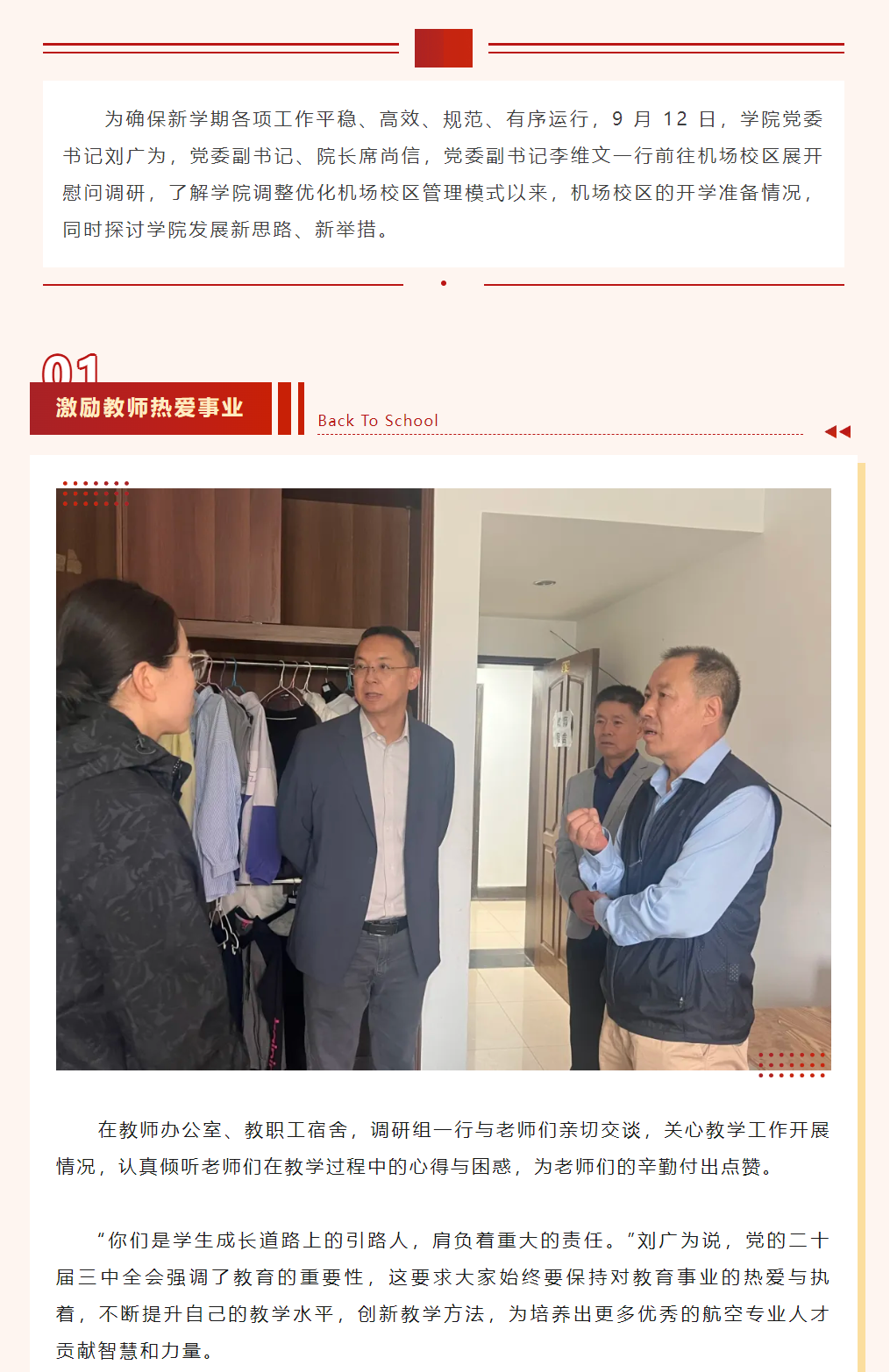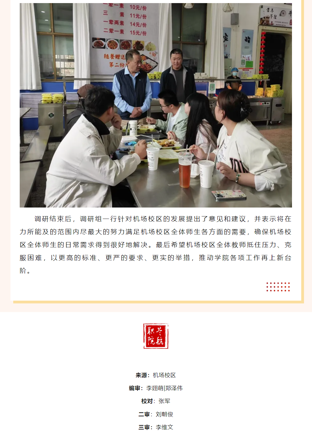 学院领导调研慰问机场校区