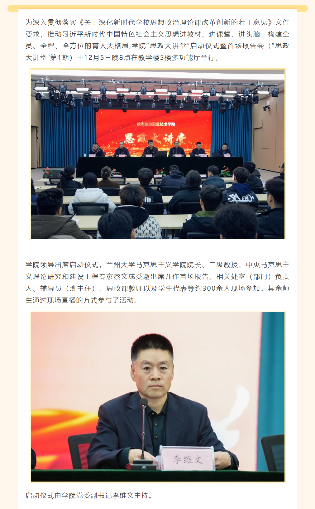 学院“思政大讲堂”启动仪式暨首场报告会圆满举行