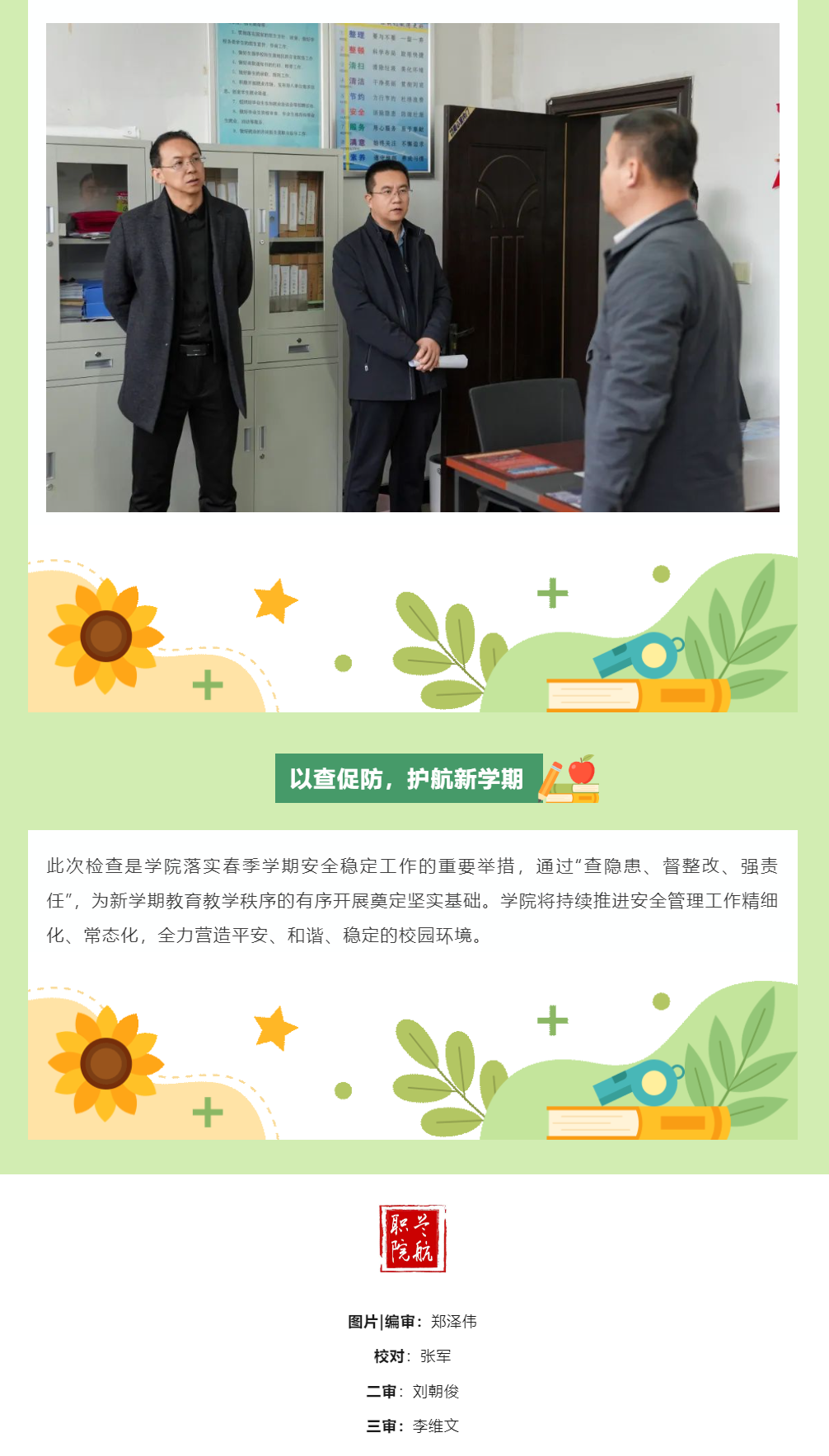 学院开展春季学期开学校园安全专项检查