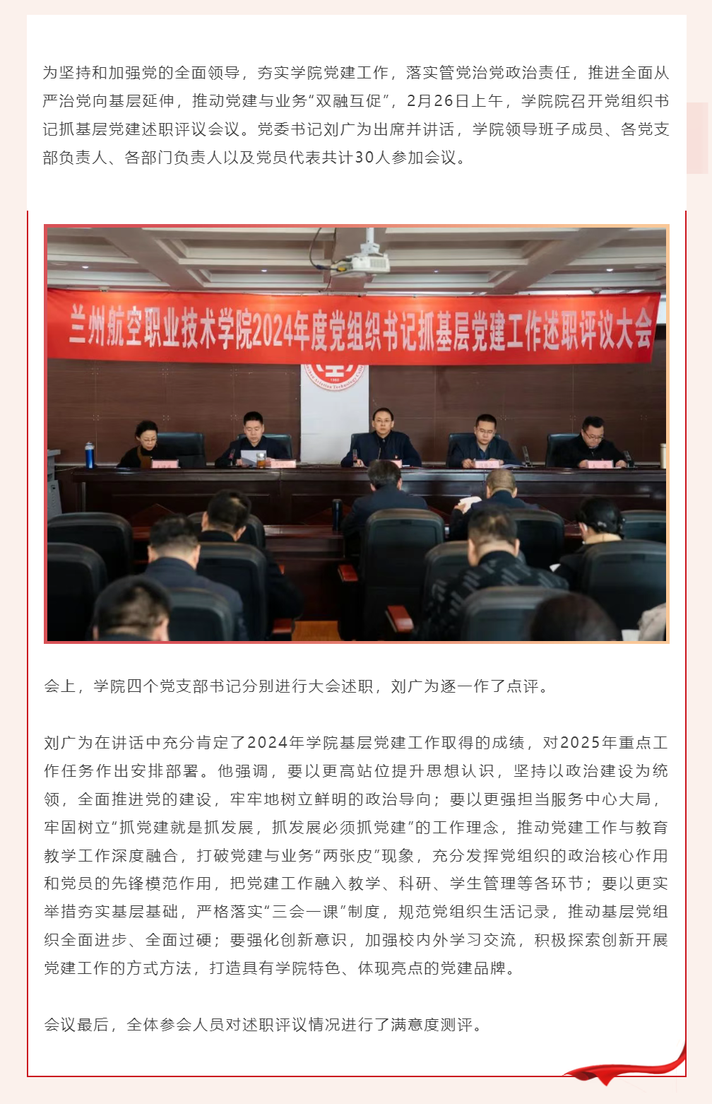 学院召开2024年度党组织书记抓基层党建工作述职评议会议