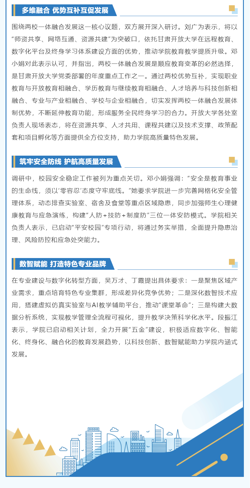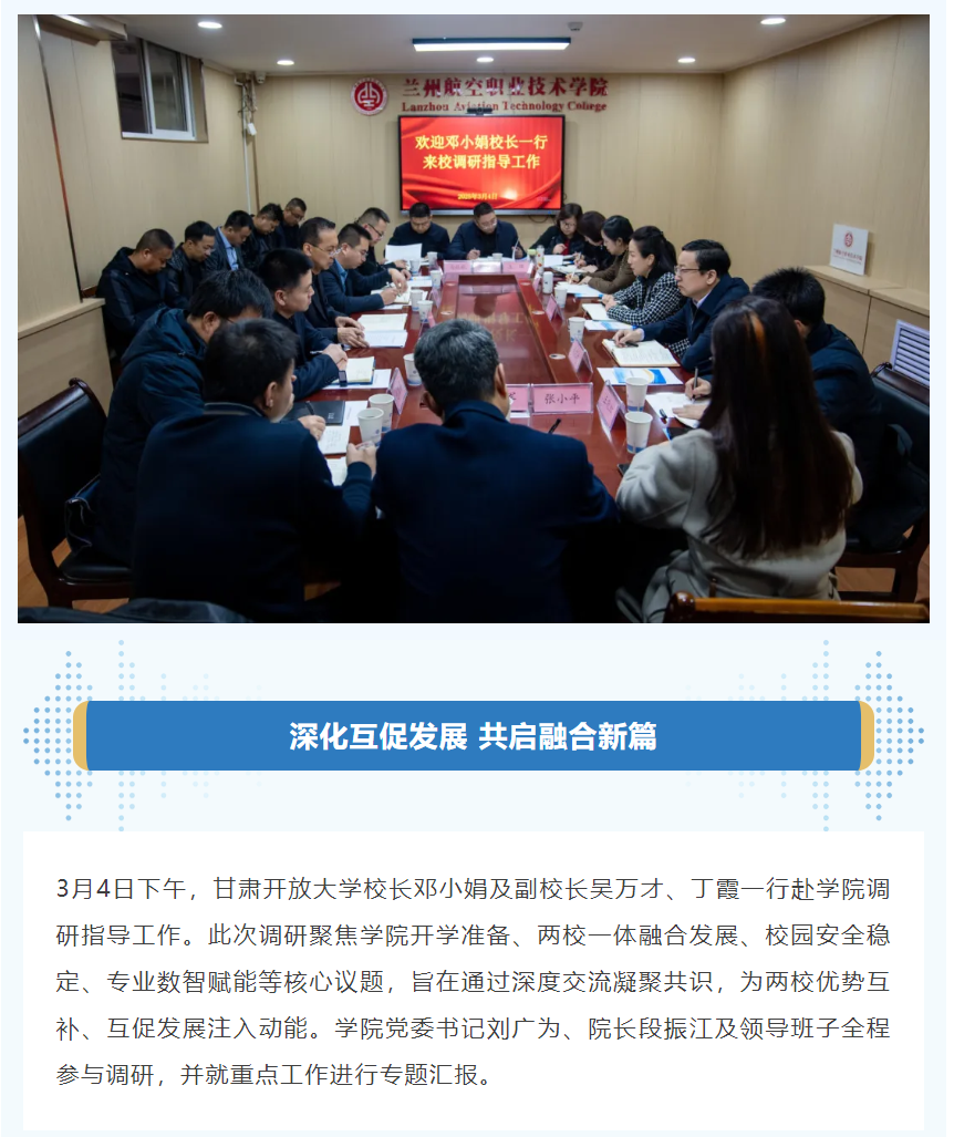 循证把脉深调研精准施策促融合|甘肃开放大学校长邓小娟一行赴学院调研指导