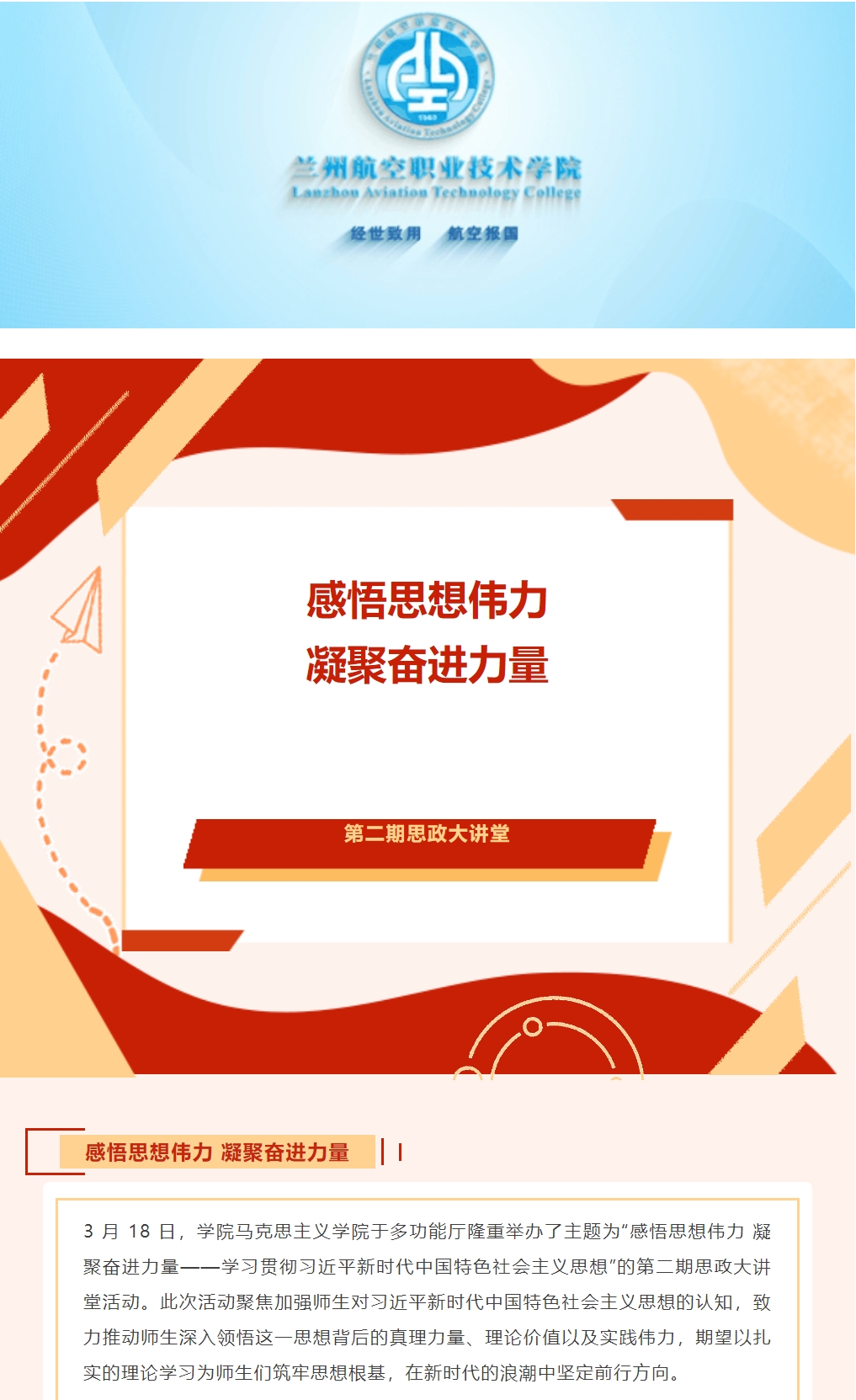 感悟思想伟力 凝聚奋进力量|学院马克思主义学院举办第二期思政大讲堂
