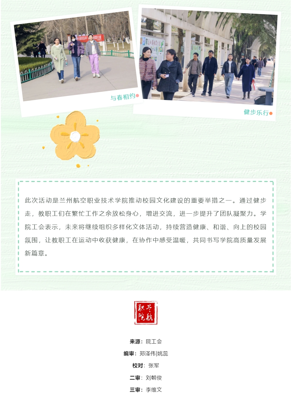 春日健步燃活力 凝心聚力启新程|beat365官方网站举办“与春相约 健步乐行”教职工健步走活动