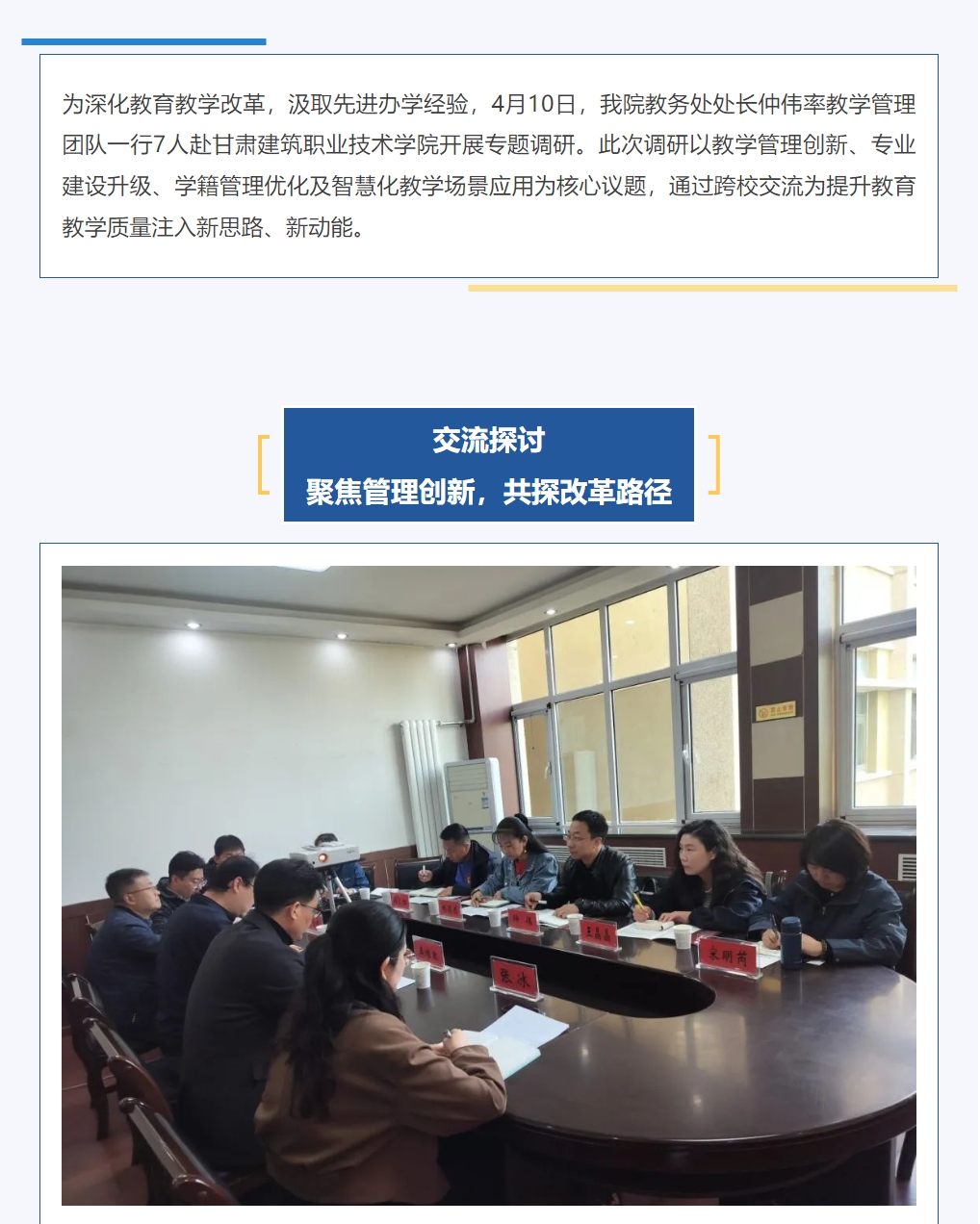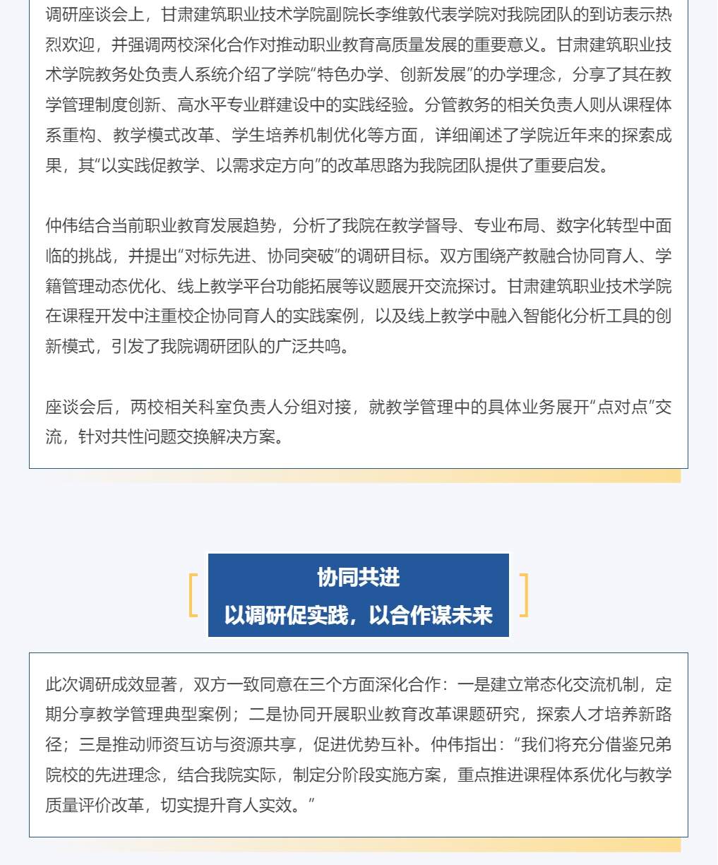 学院教务处赴甘肃建筑职业技术学院开展教学管理专题调研