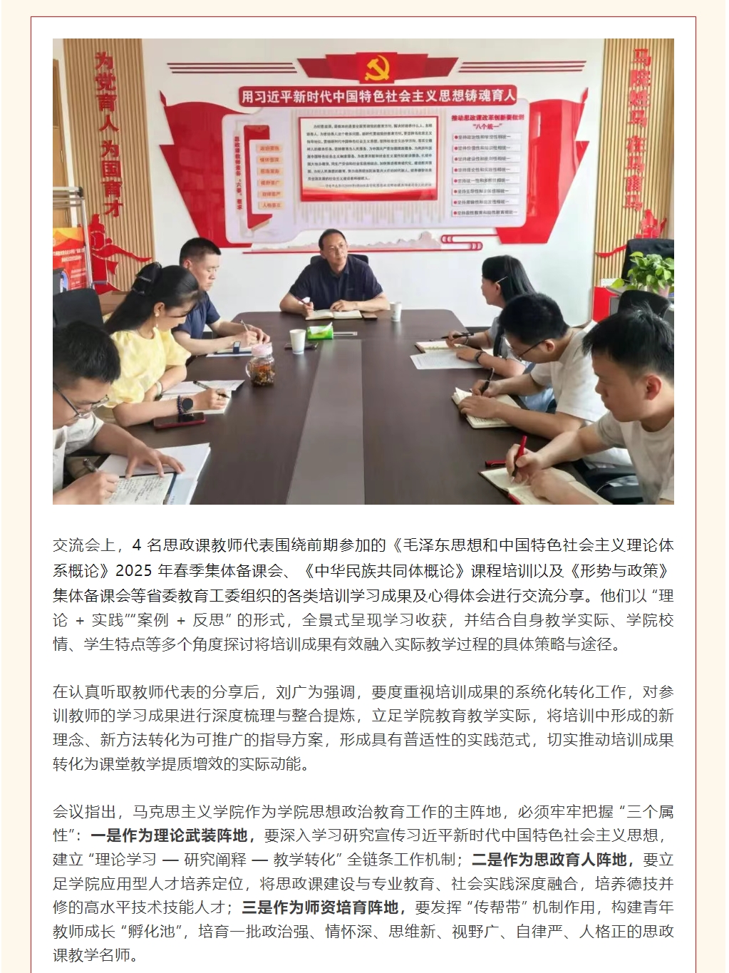 学院马克思主义学院举办思政课教师培训学习成果交流会