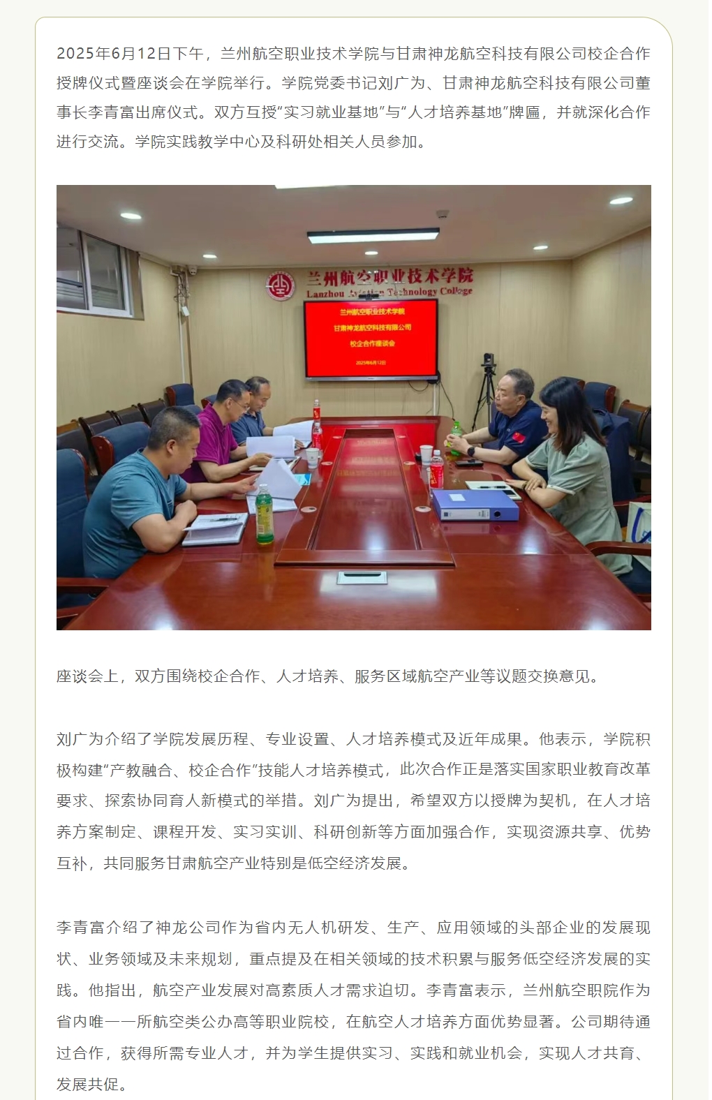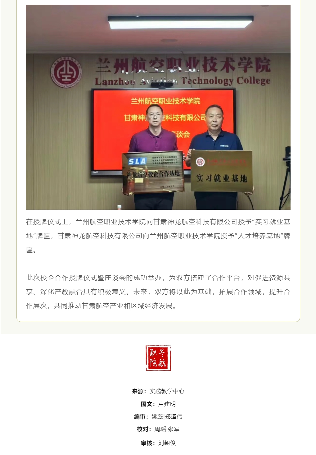 beat365官方网站与甘肃神龙航空科技举行校企合作授牌仪式