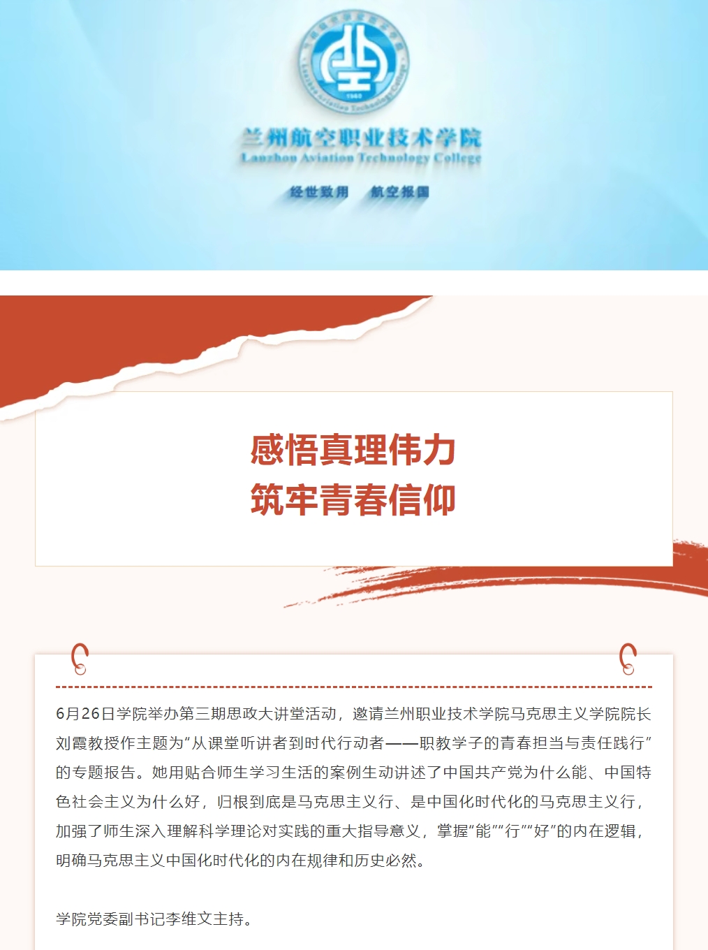 感悟真理伟力 筑牢青春信仰|学院举办第三期思政大讲堂活动