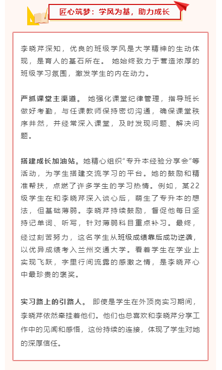 我们的育人故事|辅导员李晓芹用“三心”铺就学生青春成长路