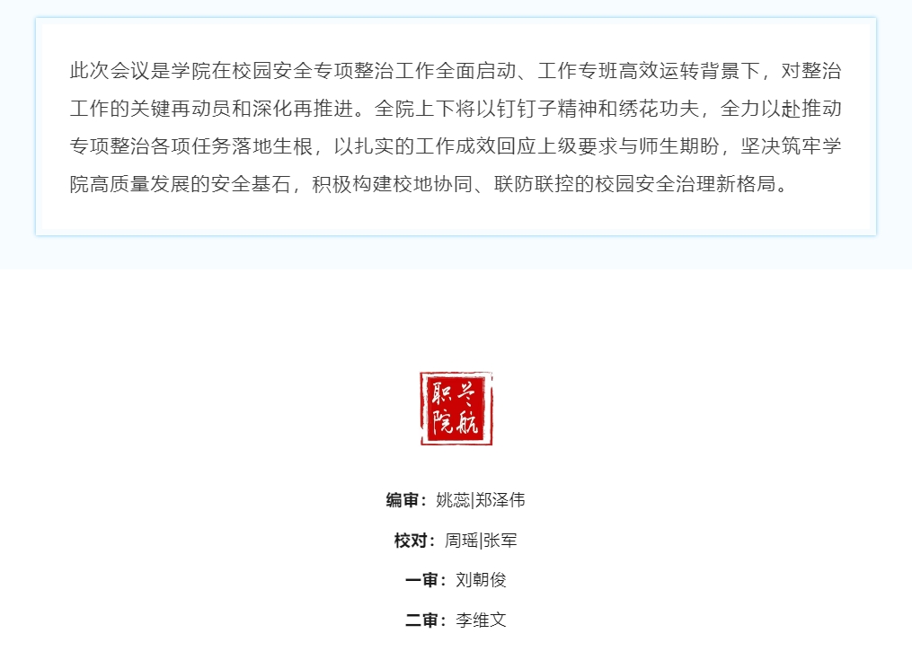 学院召开专题会议再部署再推进校园安全专项整治工作