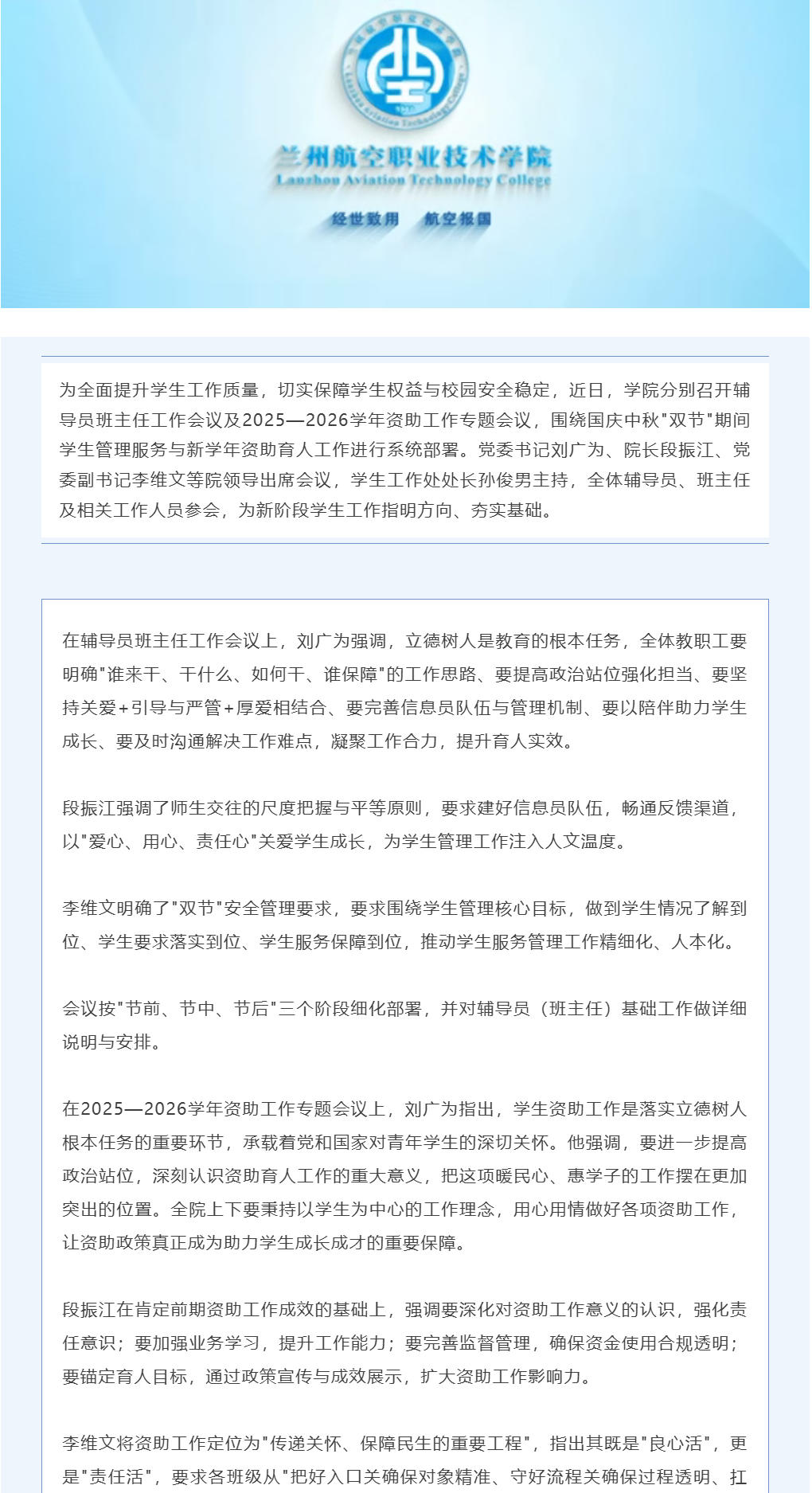 学院召开专项工作会议系统部署学生管理与资助育人工作