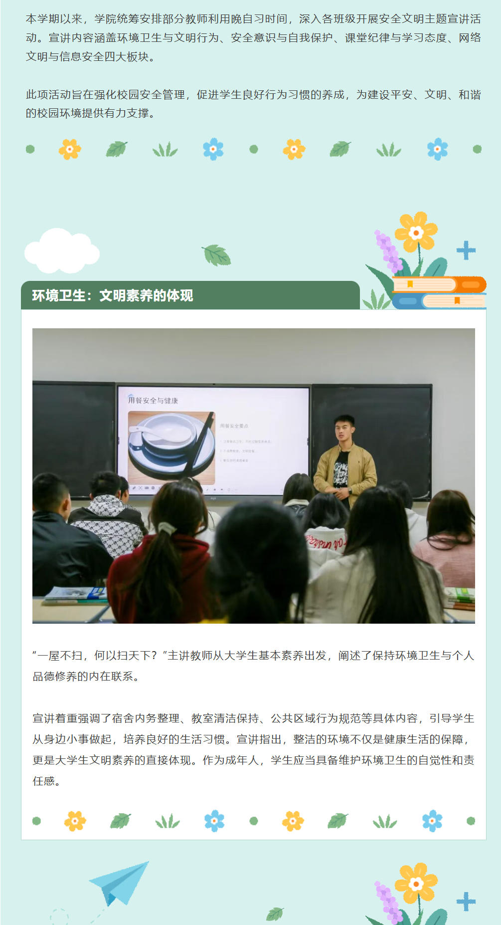 晚自习上的安全文明课:学院深入推进学生行为习惯养成教育