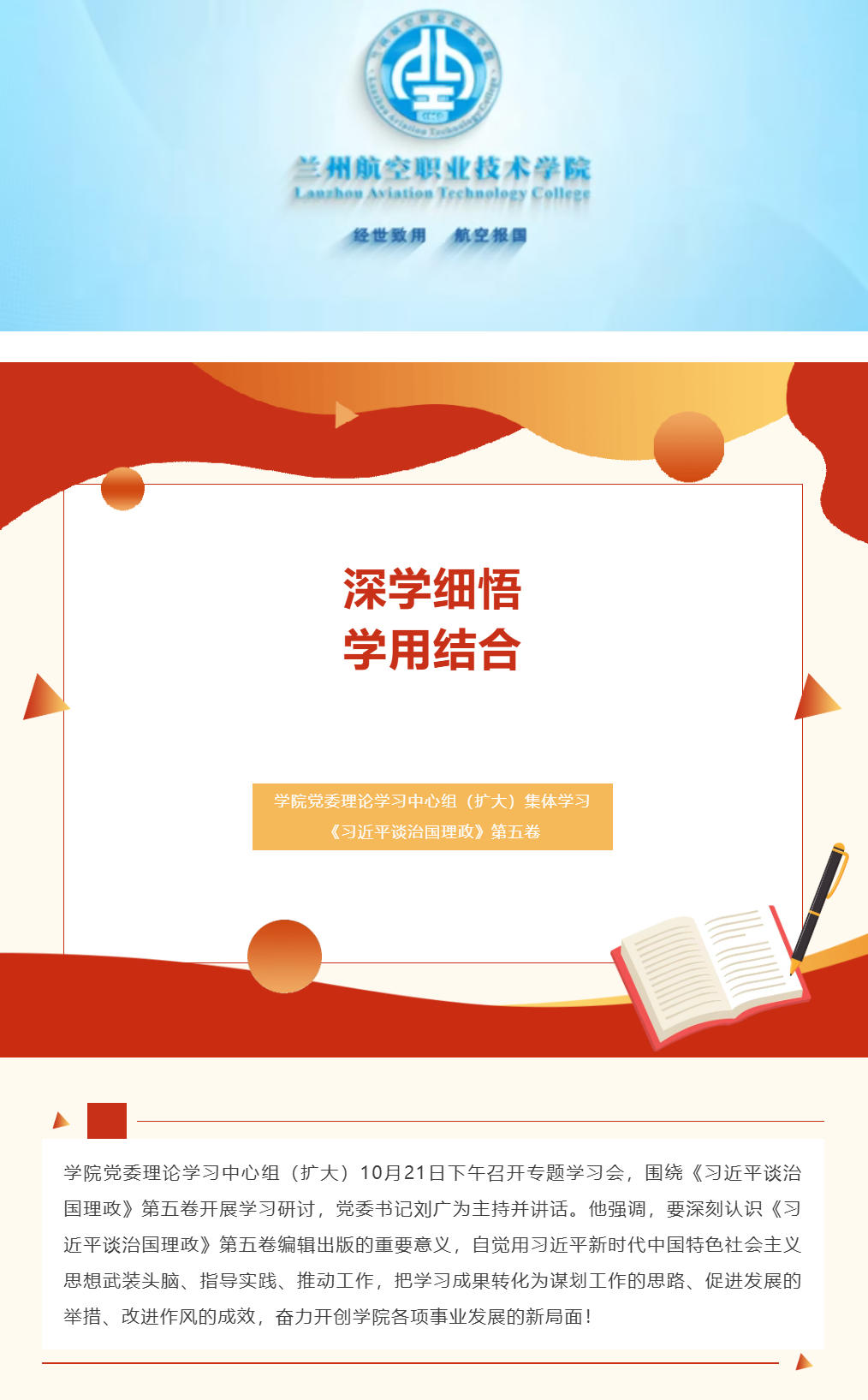 学院党委理论学习中心组(扩大)集体学习《习近平谈治国理政》第五卷