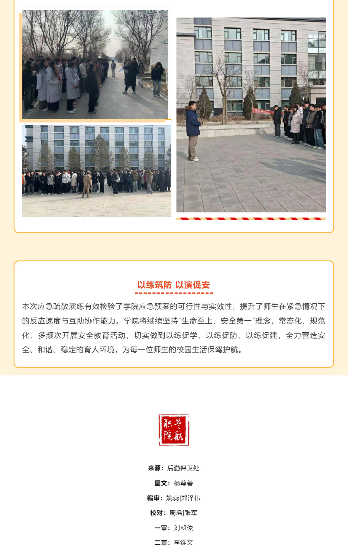 以练筑防 以演促安|学院开展应急疏散演练