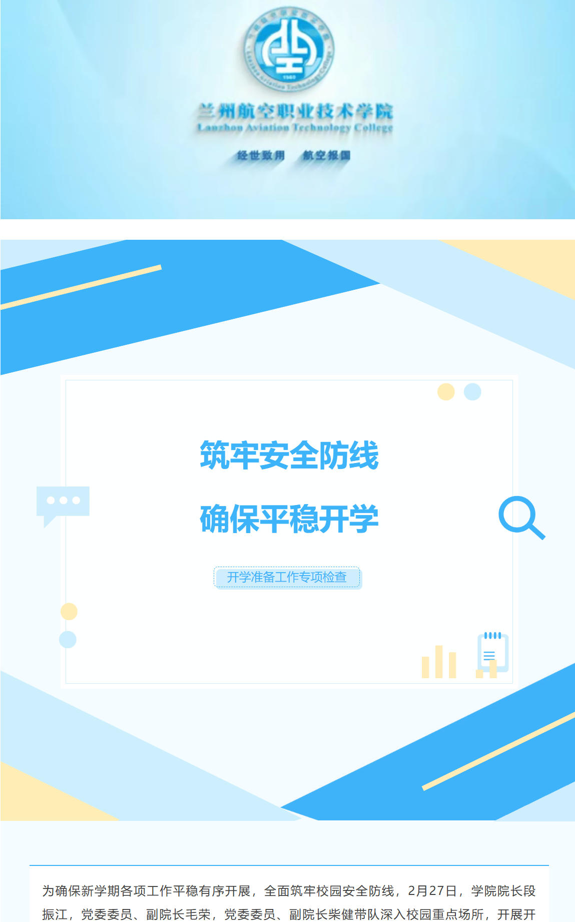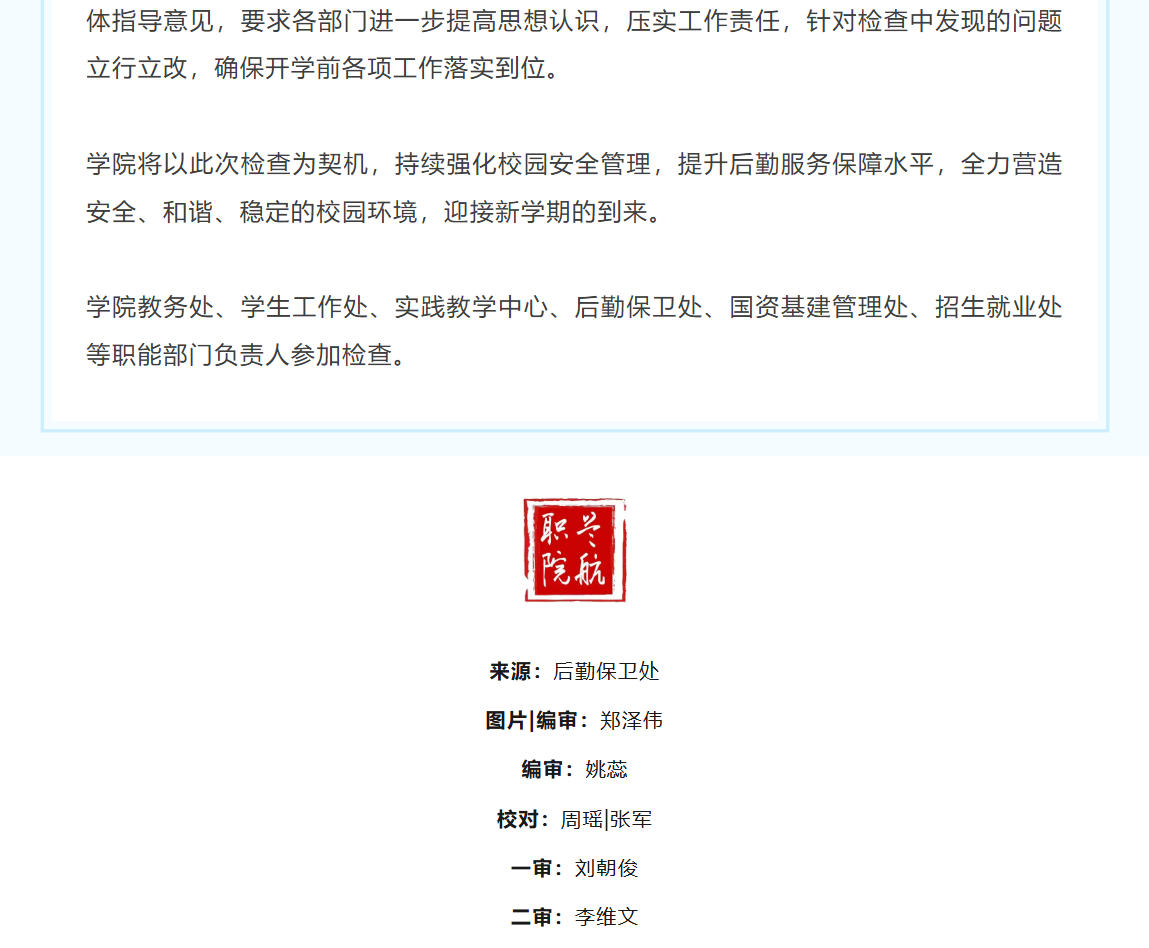 学院开展开学准备工作专项检查 确保新学期平稳有序开学