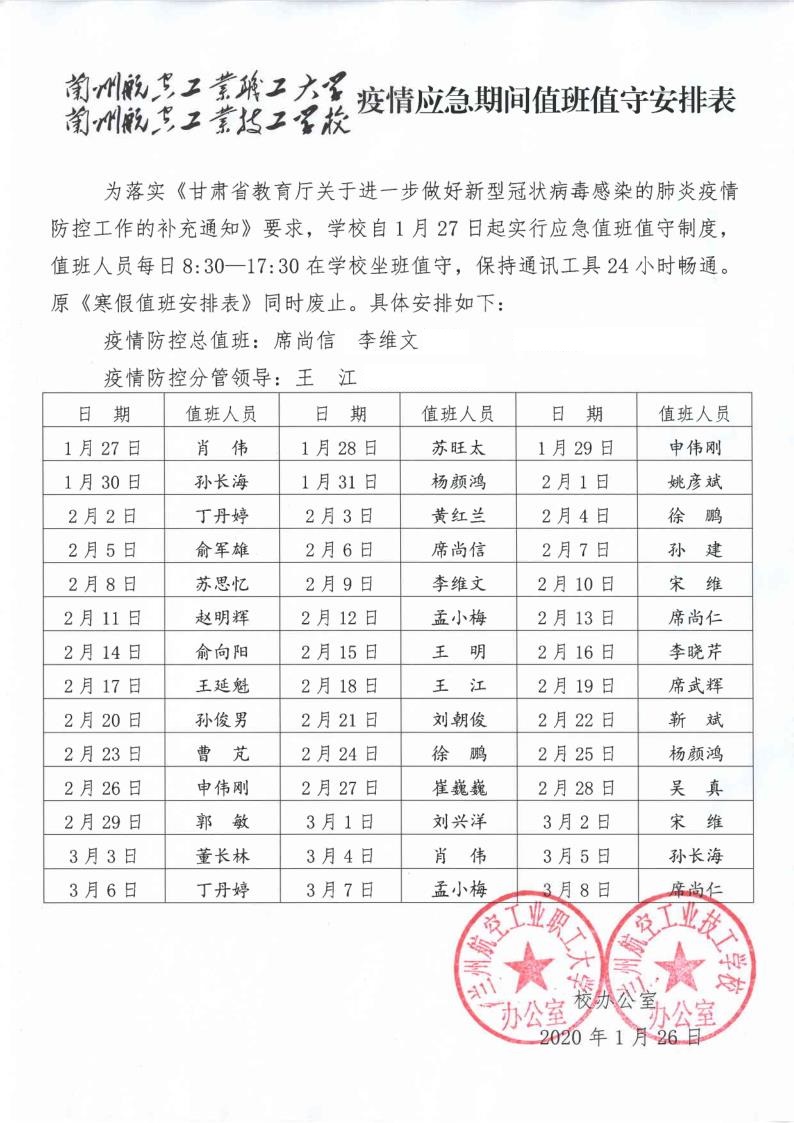 疫情应急期间值班值守安排表